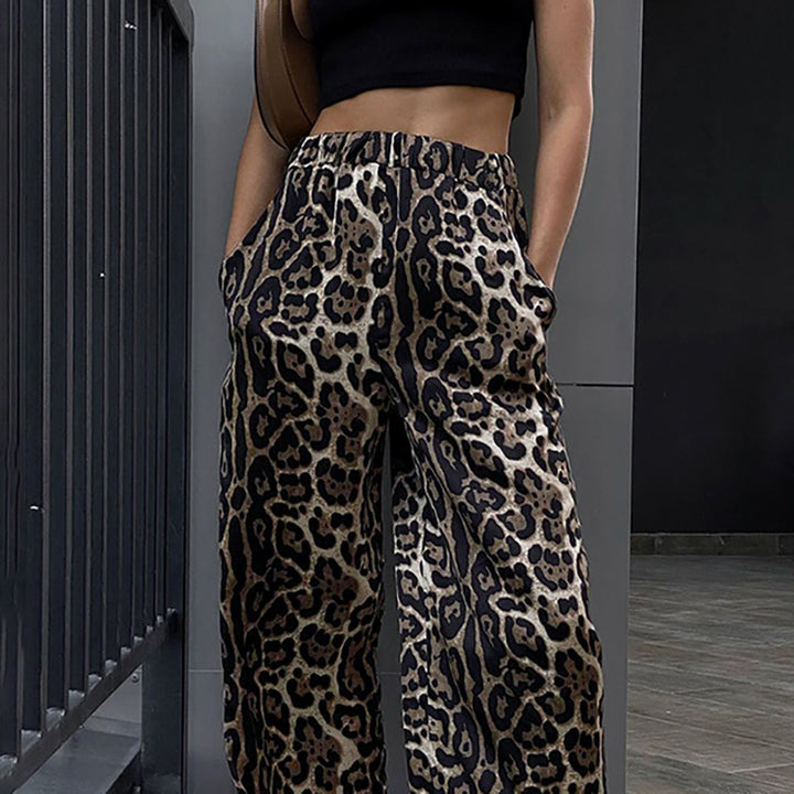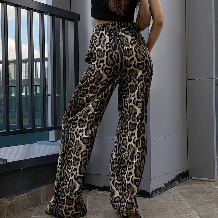 European and American fashionable fried street leopard print high-waisted wide-leg pants women's 2025 autumn loose mopping casual trousers wholesale