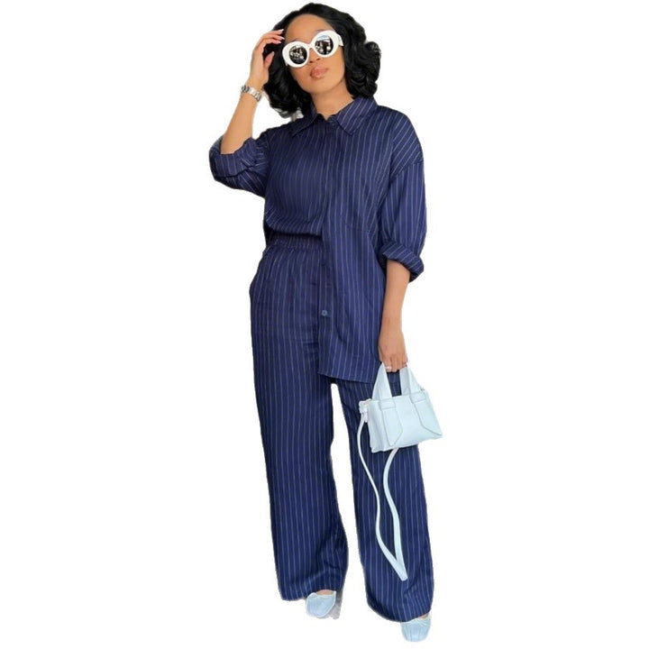 European and American French striped casual shirt women's 2025 new design sense long-sleeved ...