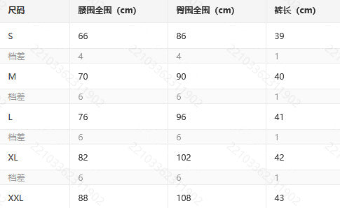 S, M, L, XL, XXL |