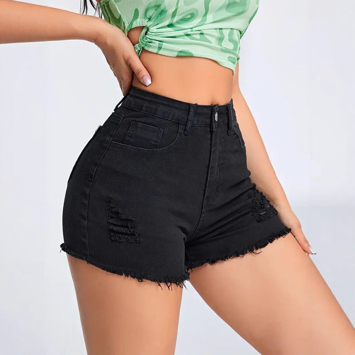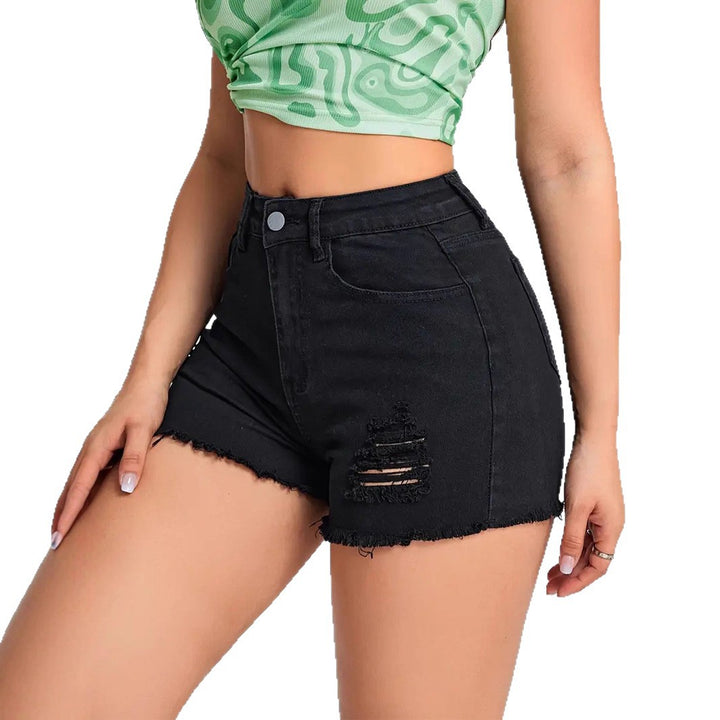 European and American hole fashion black denim, casual slim and thin craft design women's versatile denim shorts