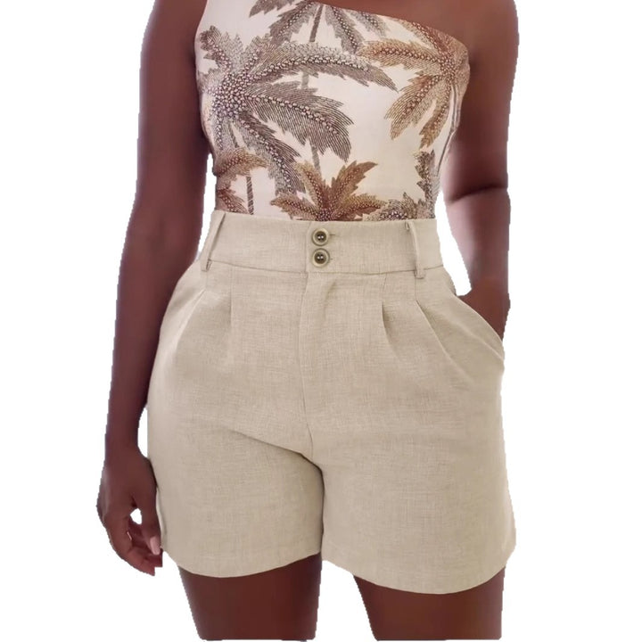 European and American independent station new fashionable and elegant solid color high-waisted casual shorts (single piece)