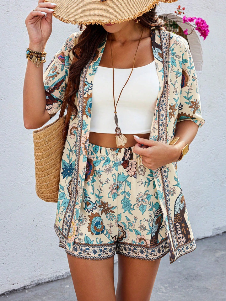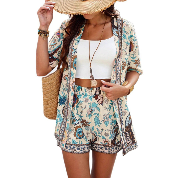 European and American independent station simple vacation sunscreen printing women's jacket shorts set