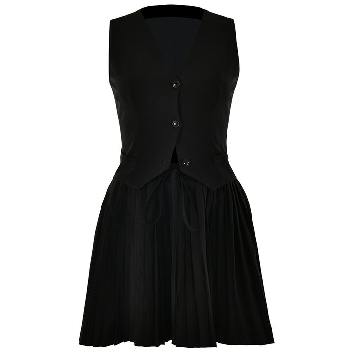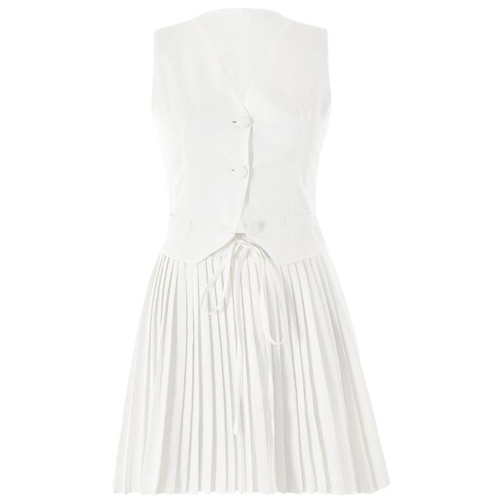 European and American ins hot-selling new suits, sexy and fashionable V-neck sleeveless vest, solid color pleated skirt two-piece set