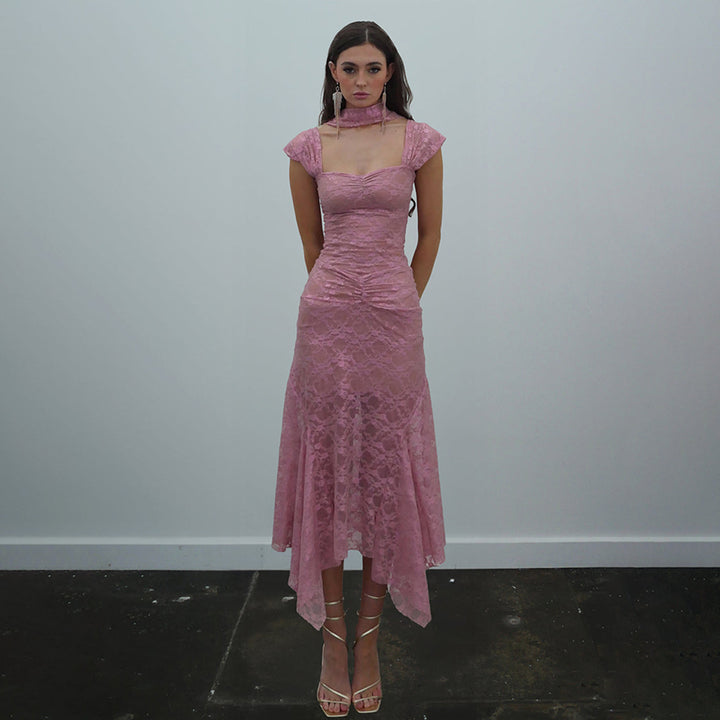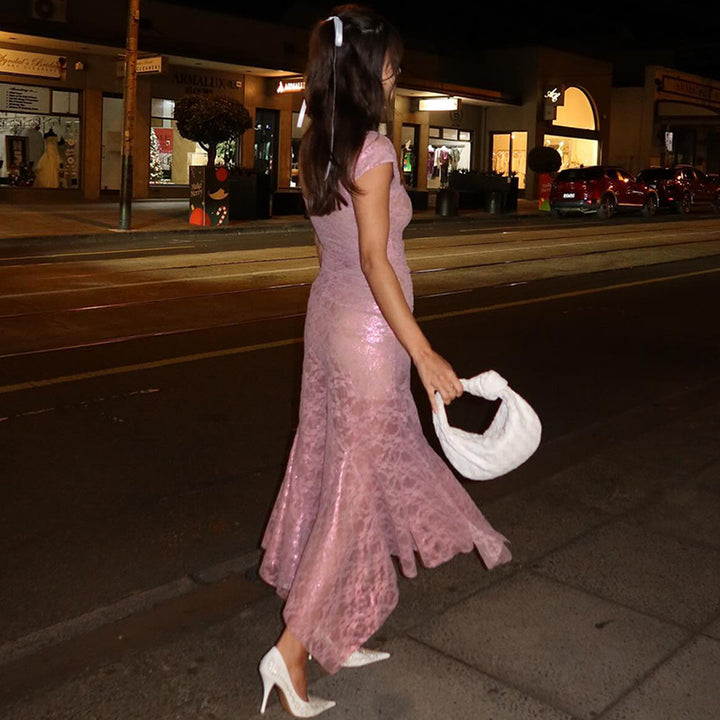 European and American ins new skirt set, lace suspender backless patchwork long skirt set, sexy Spice Girl slim skirt
