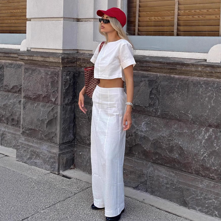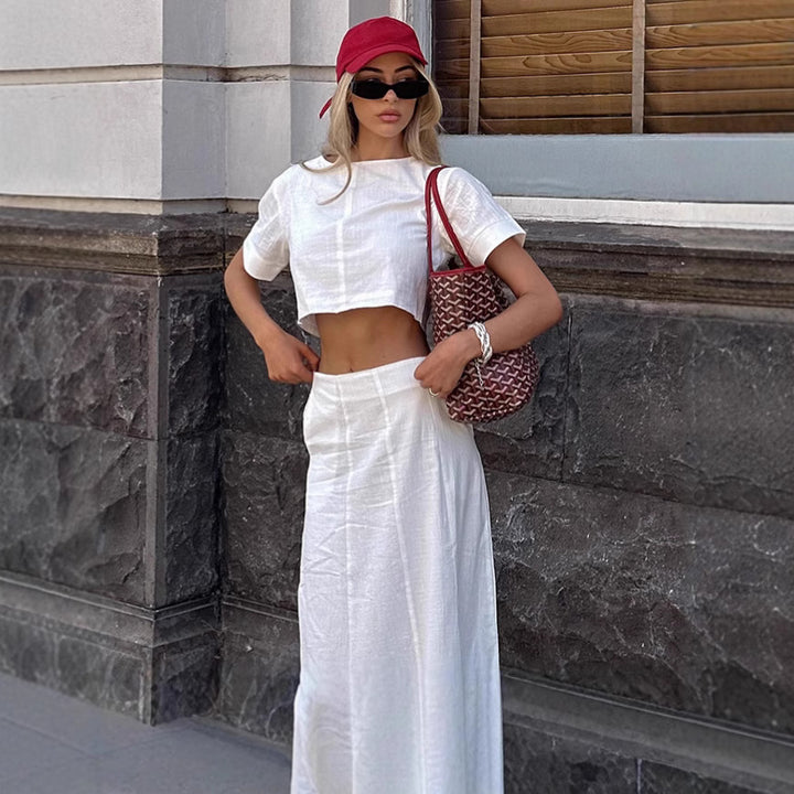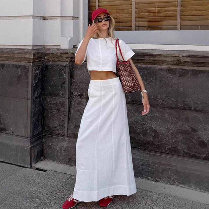 European and American ins style fashionable white short-sleeved T-shirt long skirt set women's 2025 summer casual cotton and linen two-piece women'...