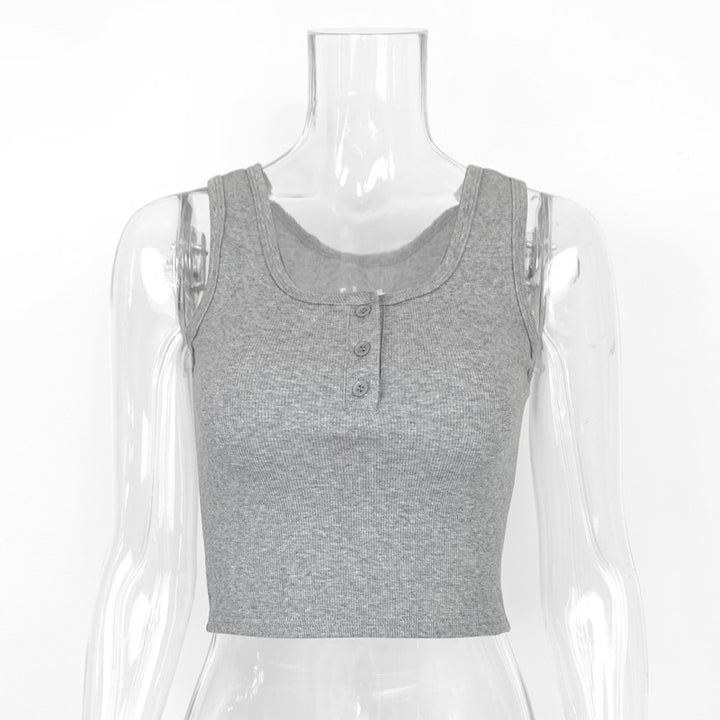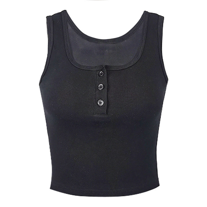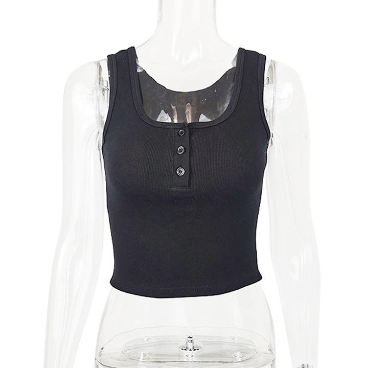 European and American ins summer new women's clothing short open-button slim-fitting sleeveless top cotton ribbed casual U-neck button vest