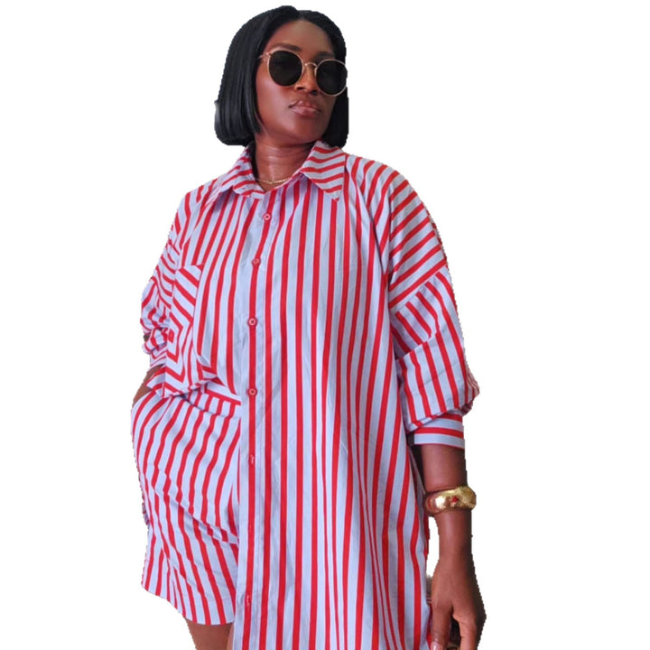 European and American large size vertical striped long-sleeved shirt women's sexy backless shirt African fashion casual shorts women's suit