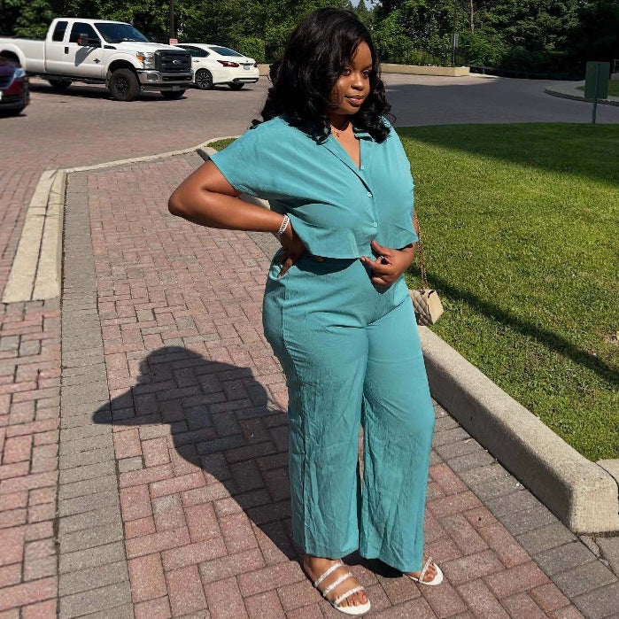 European and American large-size women's clothing fashion suit femininity short shirt African casual trousers new foreign style two-piece set