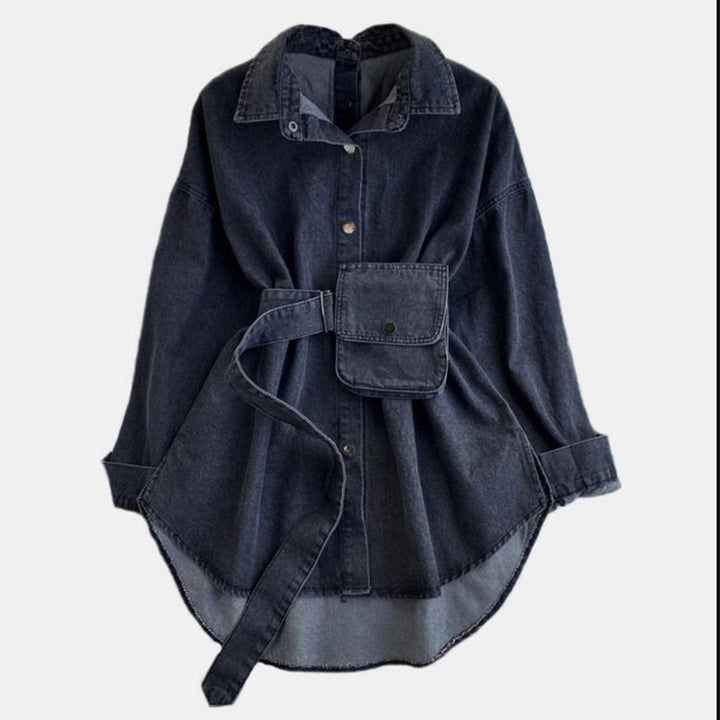 European and American long-sleeved independent station women's clothing design lace-up waist halter wear bag denim shirt