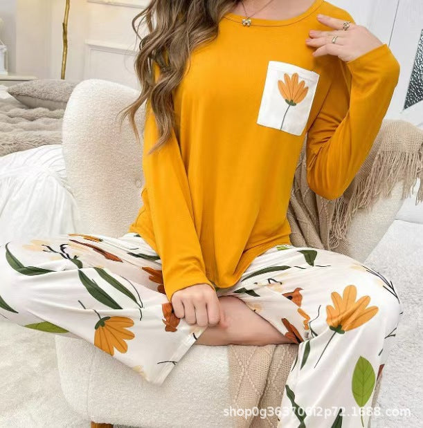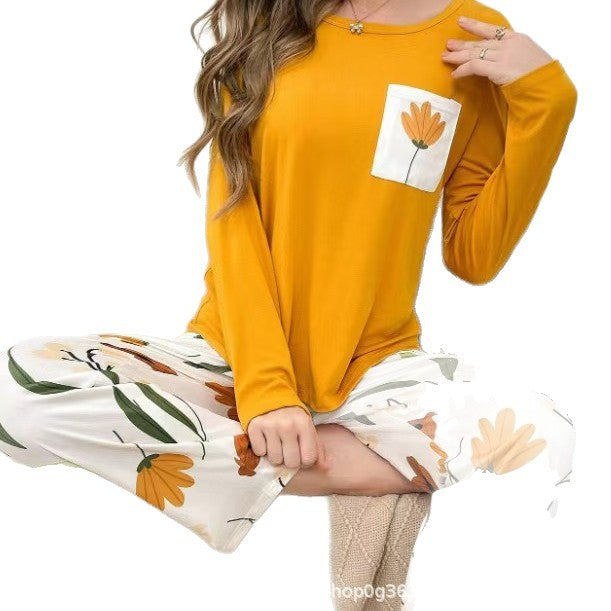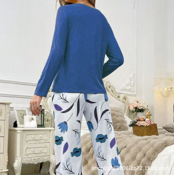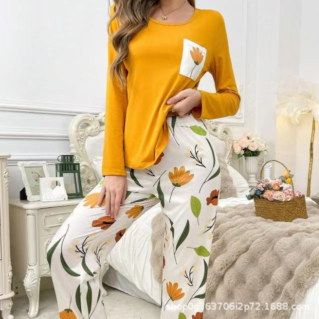 European and American long-sleeved trousers loose casual pocket printed T-shirt top women's...