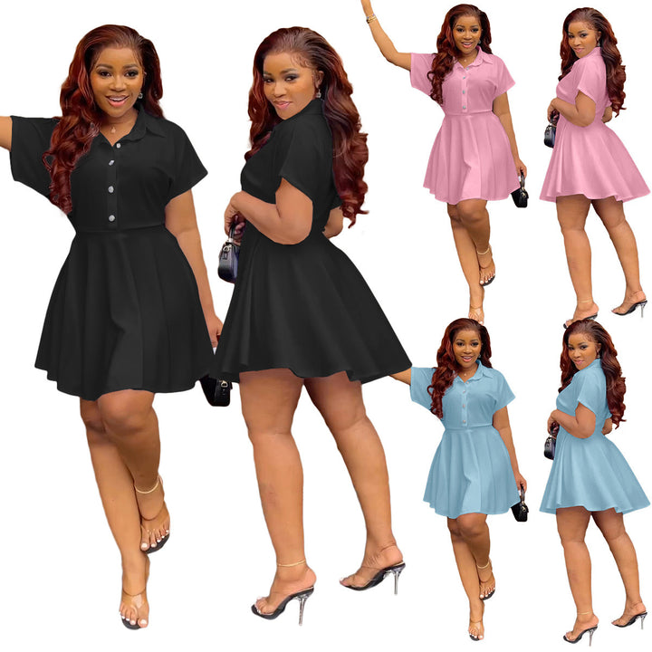 European and American new daily casual Polo collar button short-sleeved dress short skirt A-shaped skirt women's clothing
