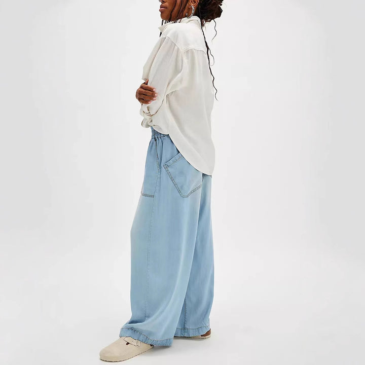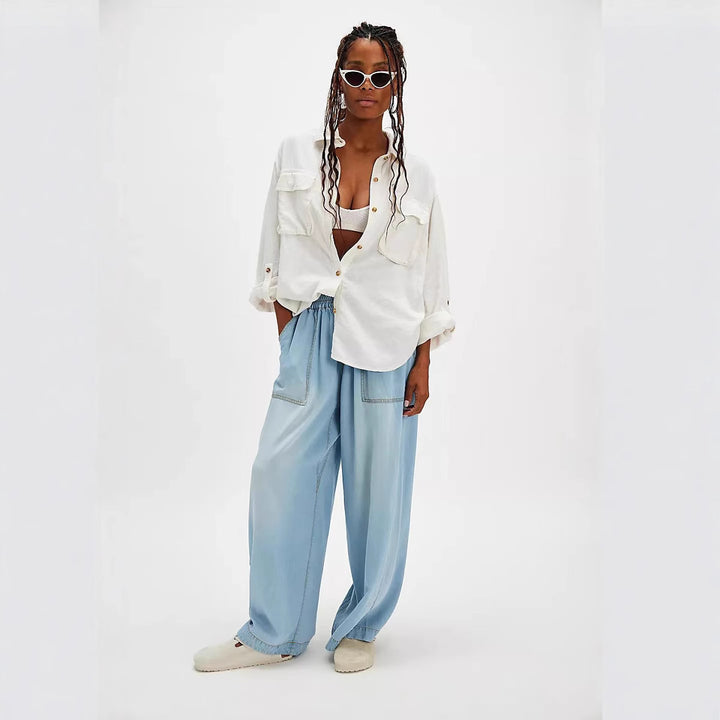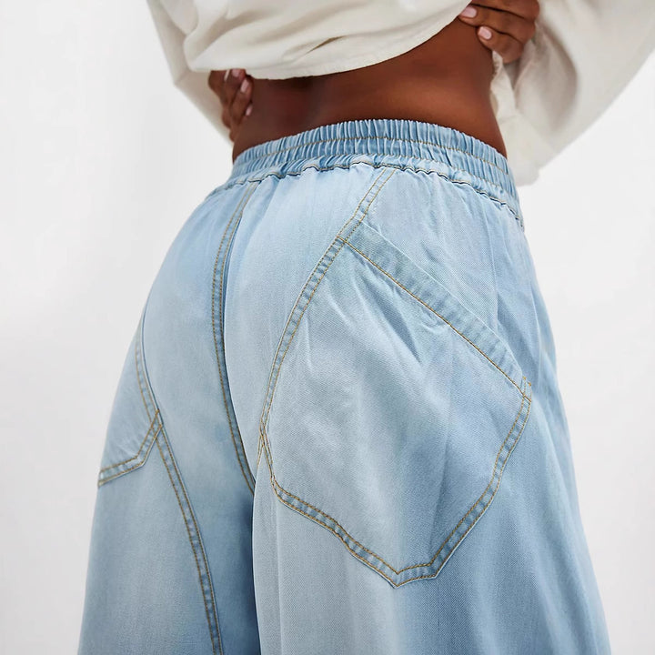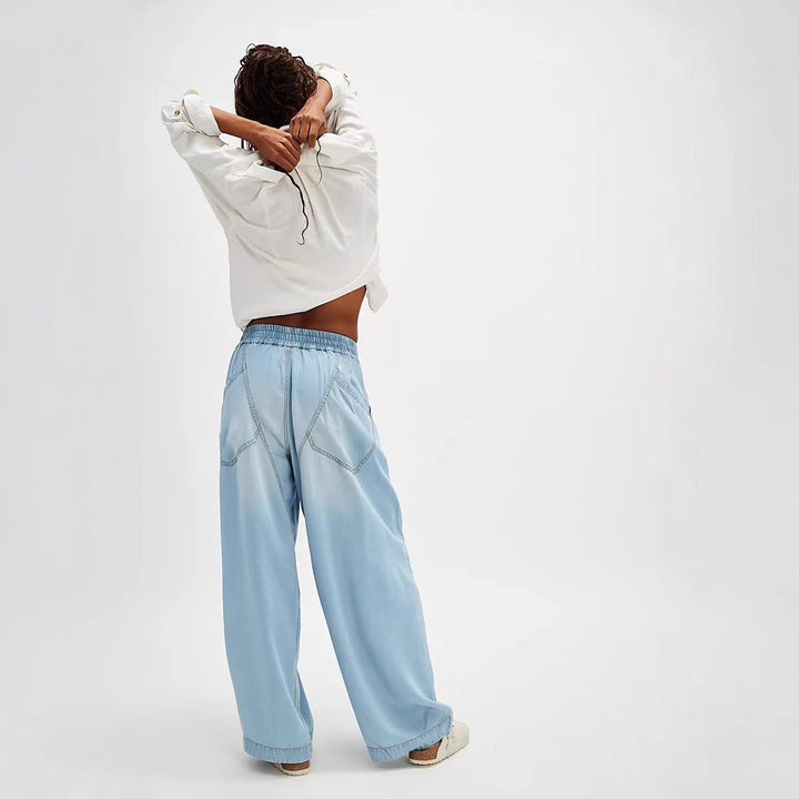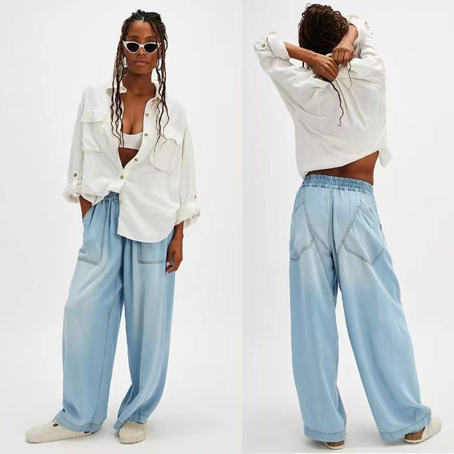 European and American new fashion drape washed straight loose casual jeans trousers women