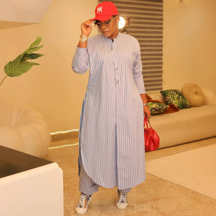 European and American new loose large size holiday robe cardigan casual shirt trousers women'...