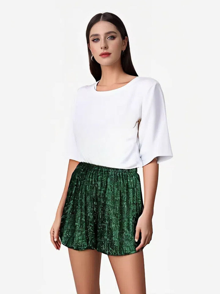 European and American new sexy trend straight high waist solid color casual sequins three points library women's shorts pants women