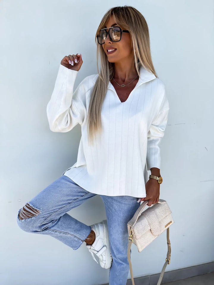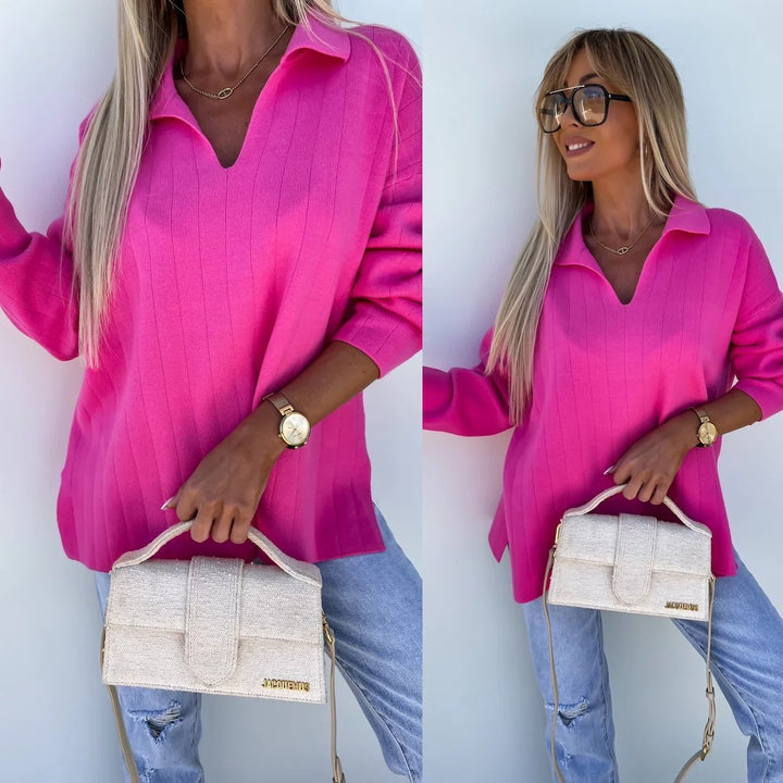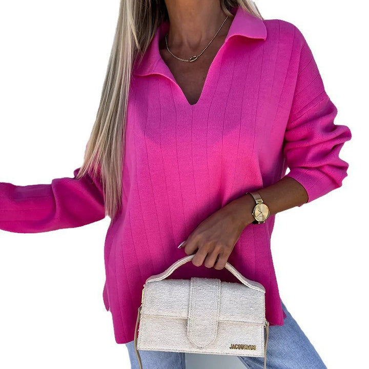 European and American new women's casual POLO shirt spring and summer long-sleeved lapel loose top women