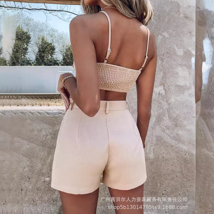 European and American new women's clothing hot diamond splicing love sling vest casual set 2-piece set WMPS0023
