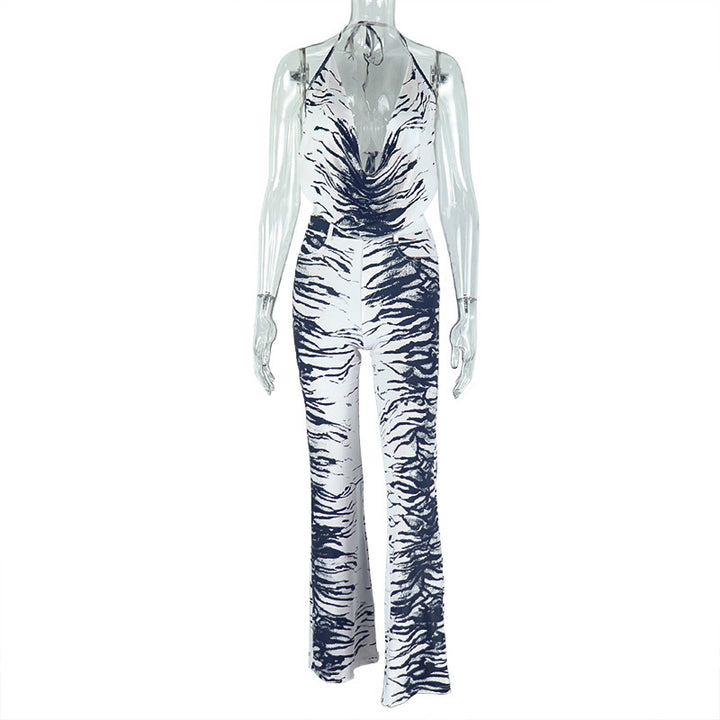 European and American personalized fashion women's clothing loose wide-leg casual pants set, sexy halter lace-up, black and white trend two-piece set