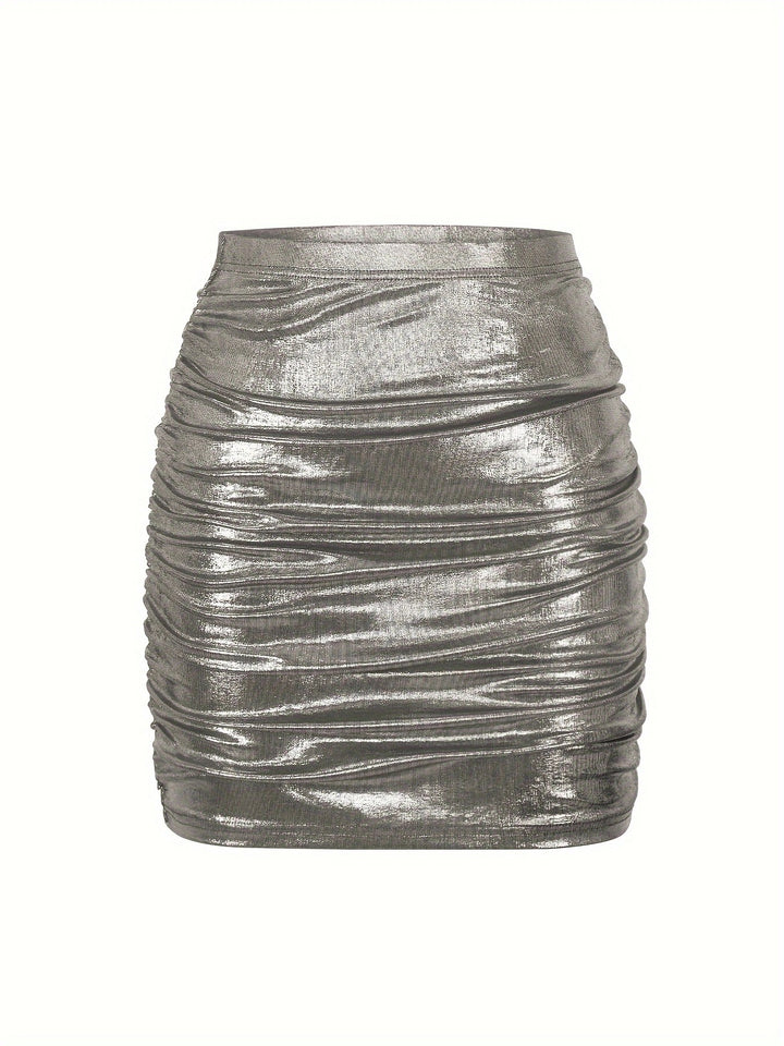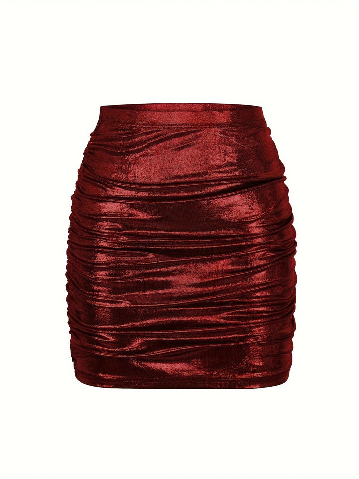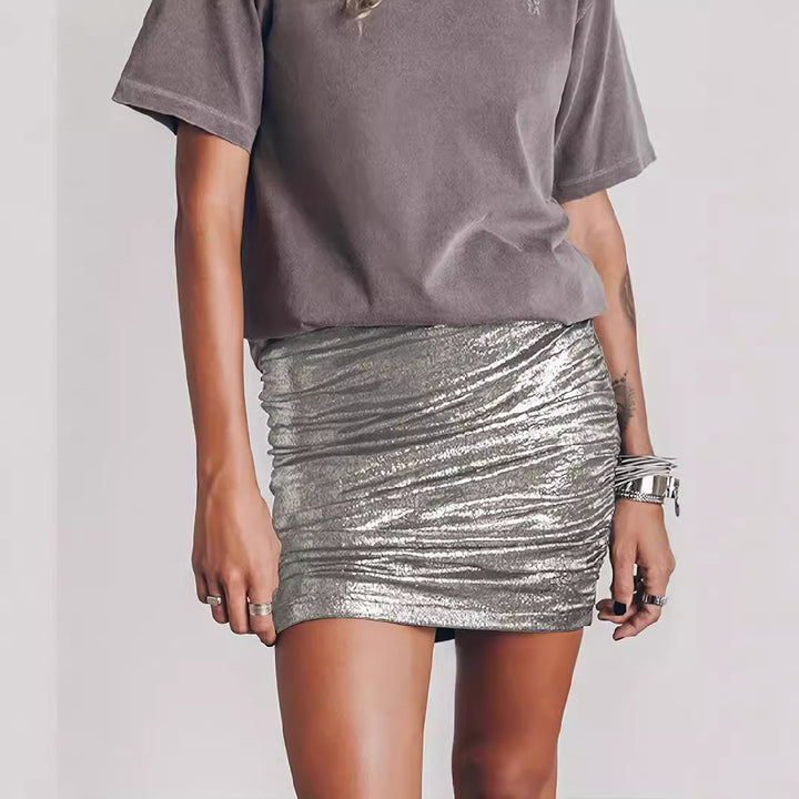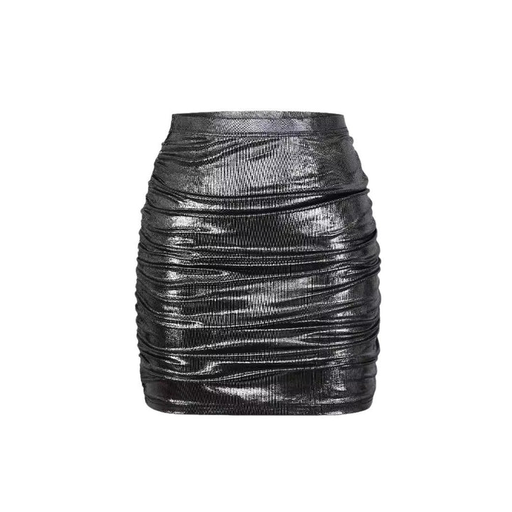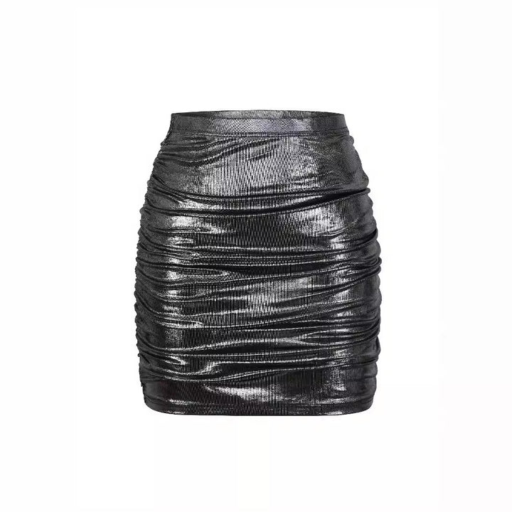 European and American pleated skirt Spice Girl sexy elastic hip skirt waist glossy fashion skirt