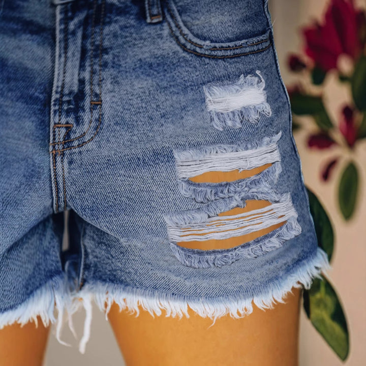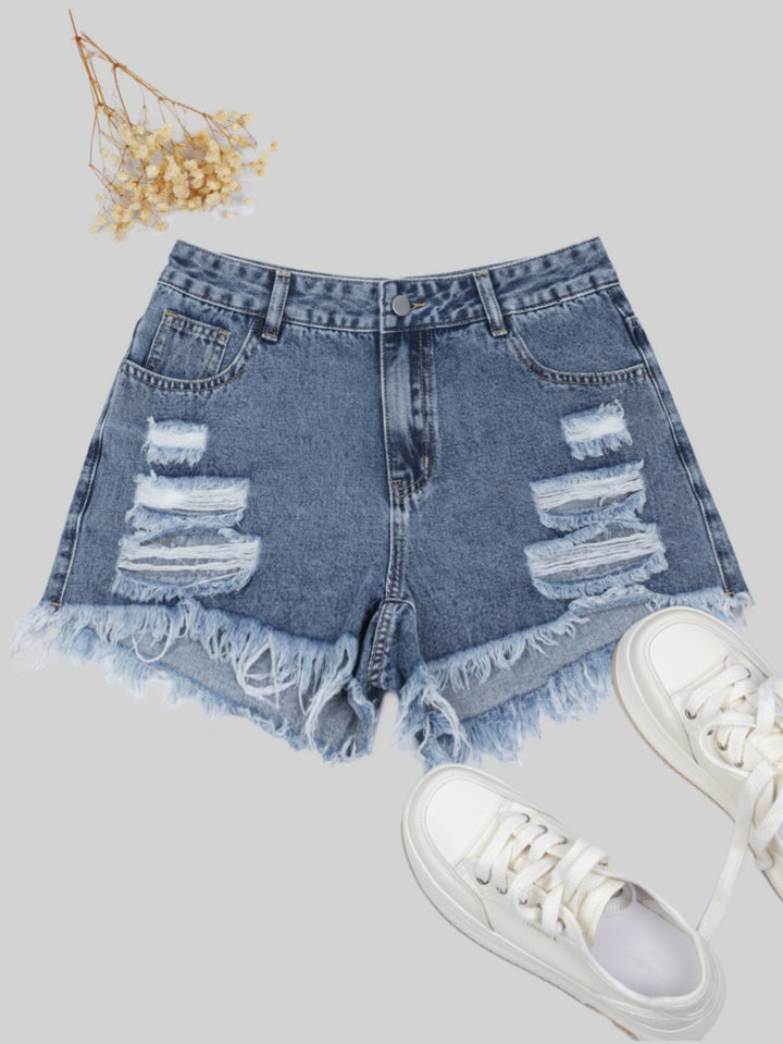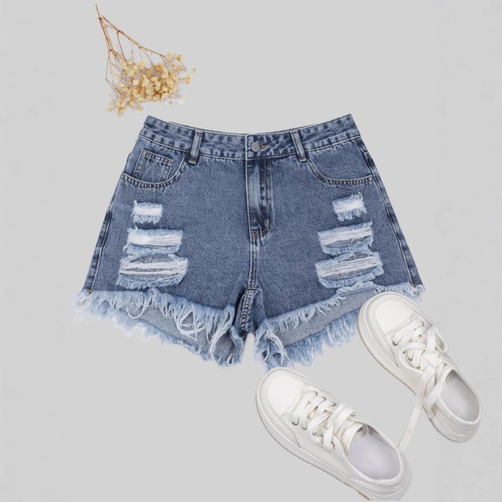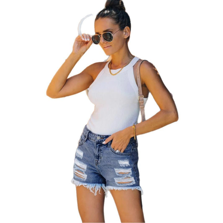 European and American retro irregular fashion trend ripped denim shorts women's thin high waist thin size three-point pants