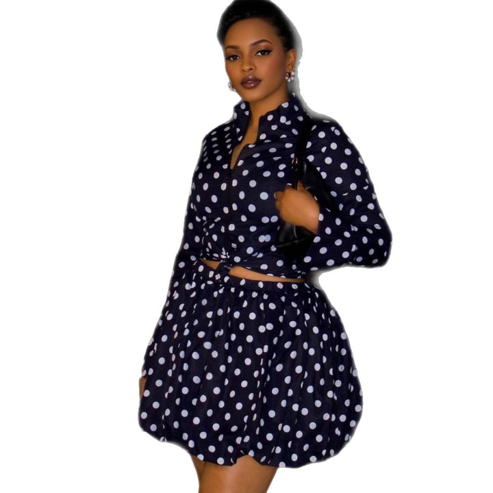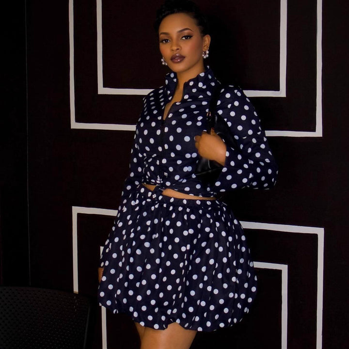 European and American retro polka dot long shirt short women's large size top African temperament new women's shorts two-piece set