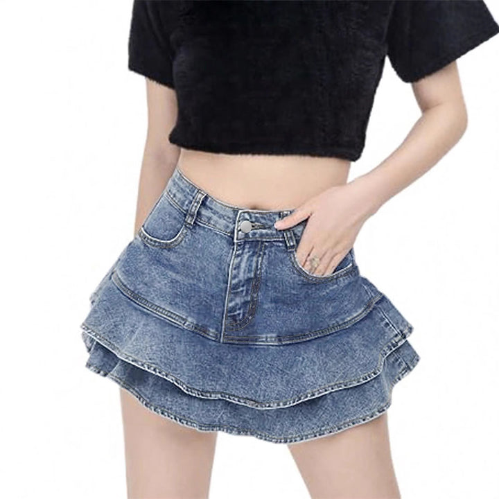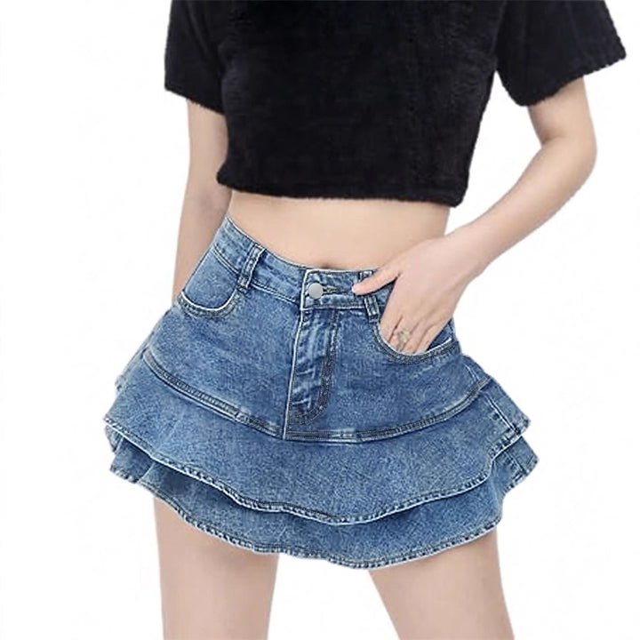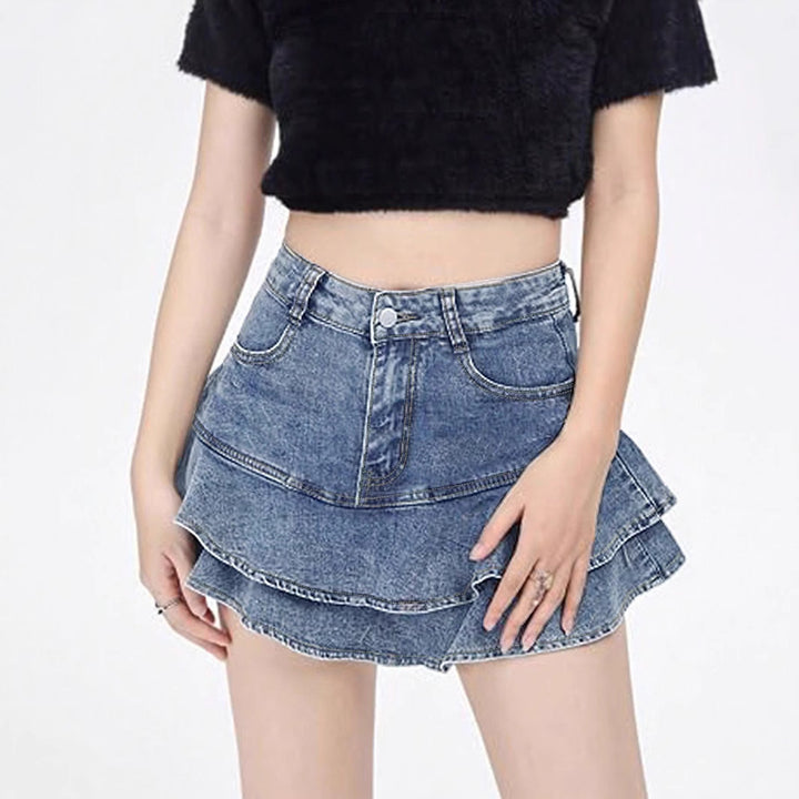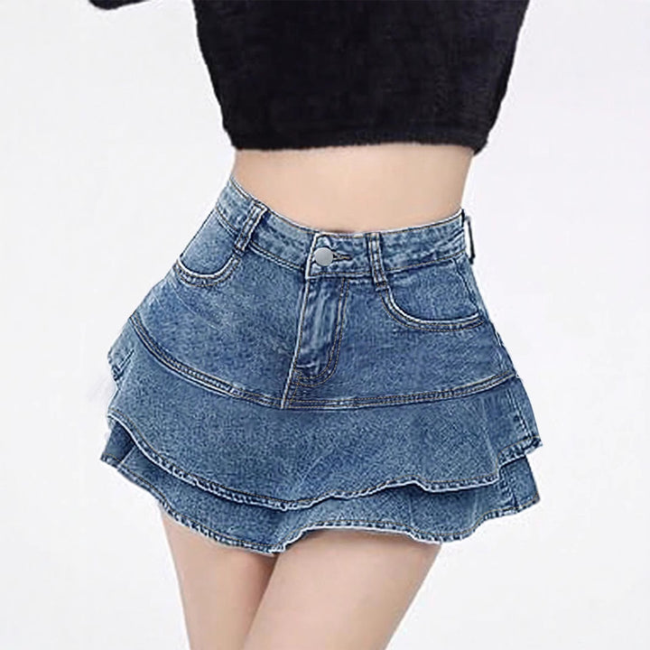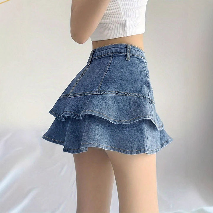 European and American ruffle edge denim skirt women's summer new thin mid-waist a-word hip skirt