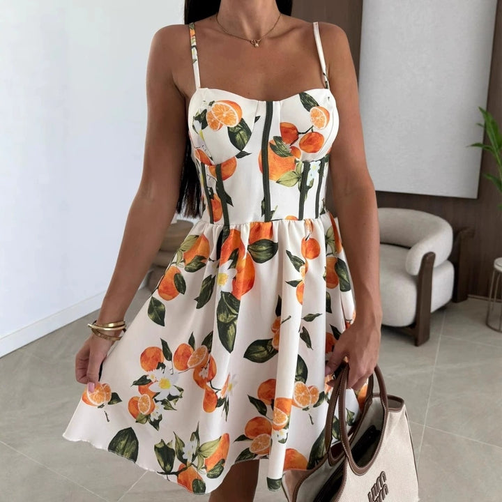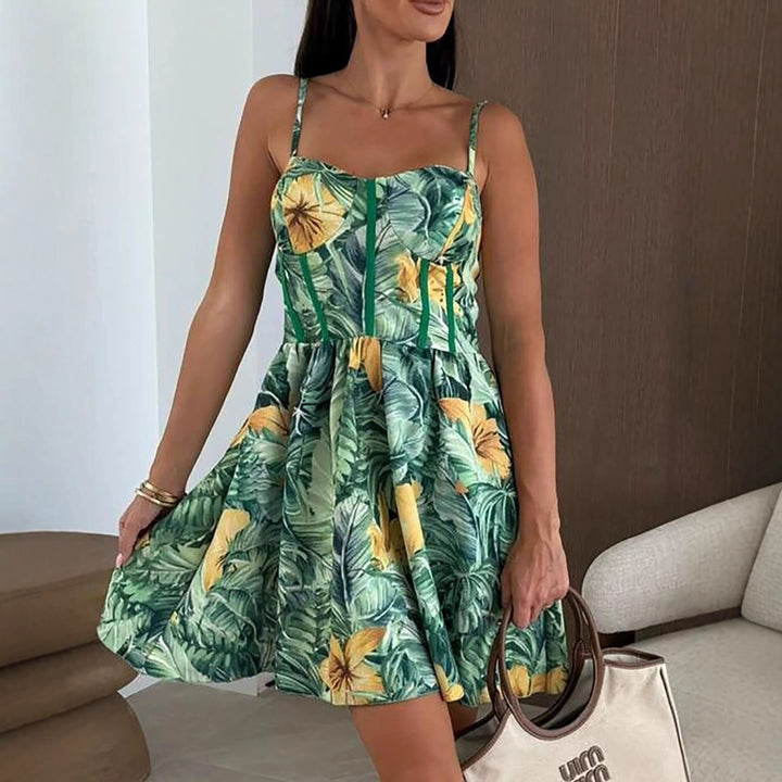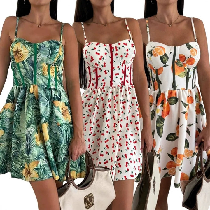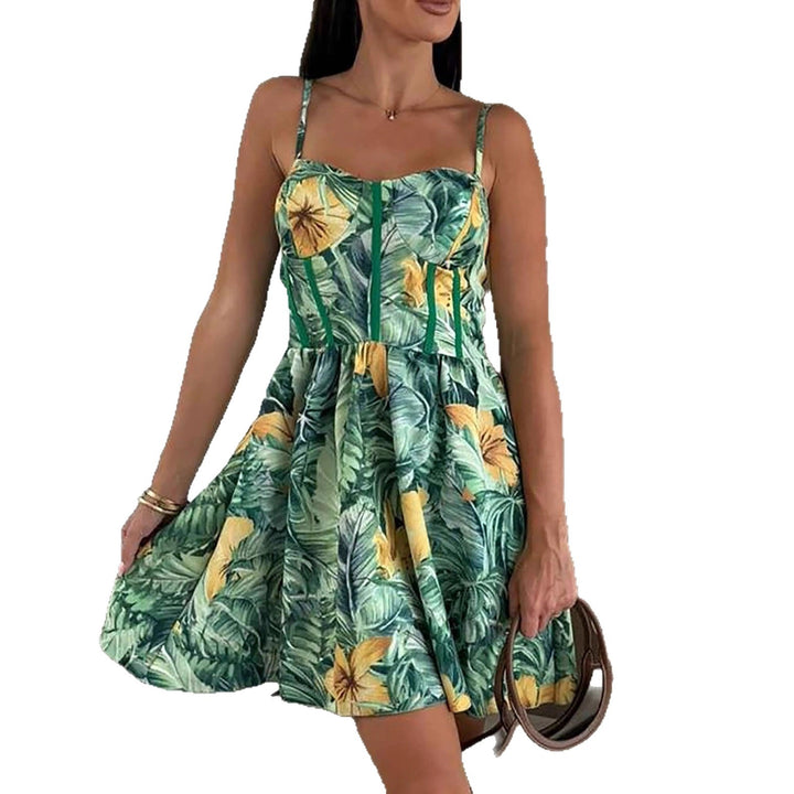 , European and American , sexy suspender halter print big pendulum women's dress