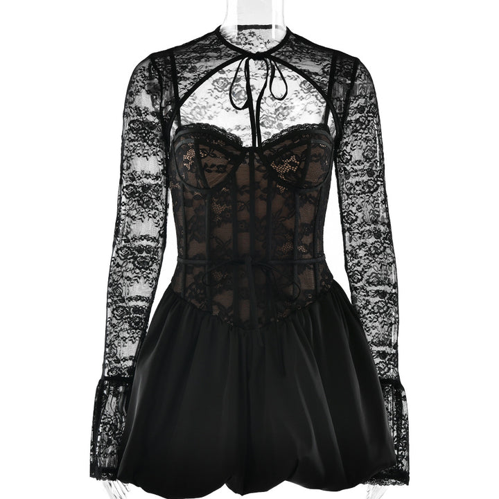 black, Made of lace + silk satin + milk silk fabric, Note: Long-sleeved shawl + dress two-piece set, High-quality restoration, front sheet with fish bone |