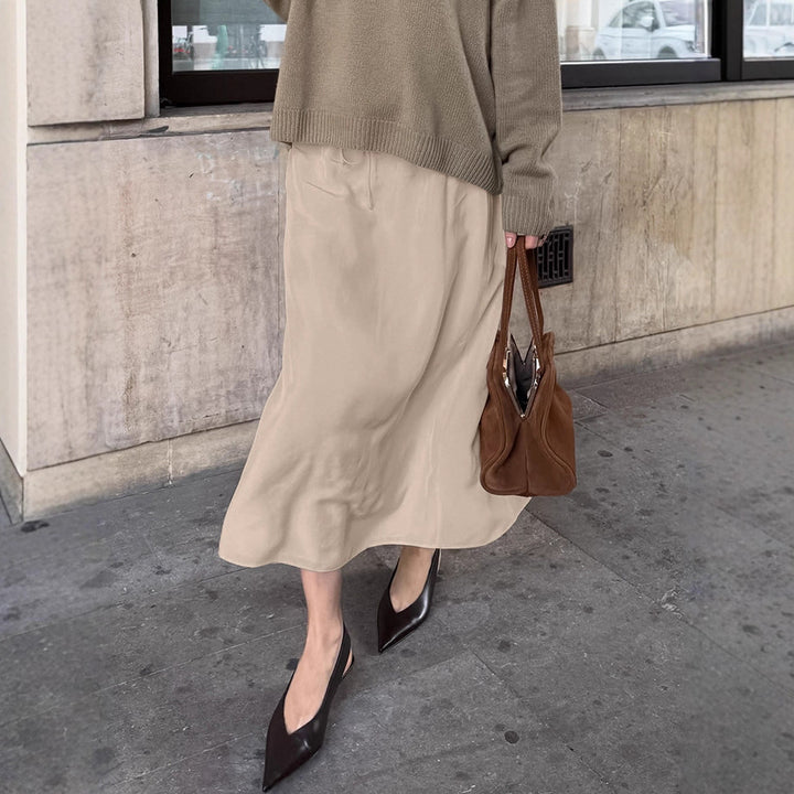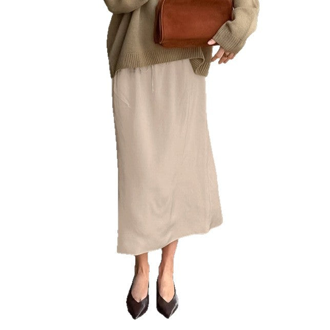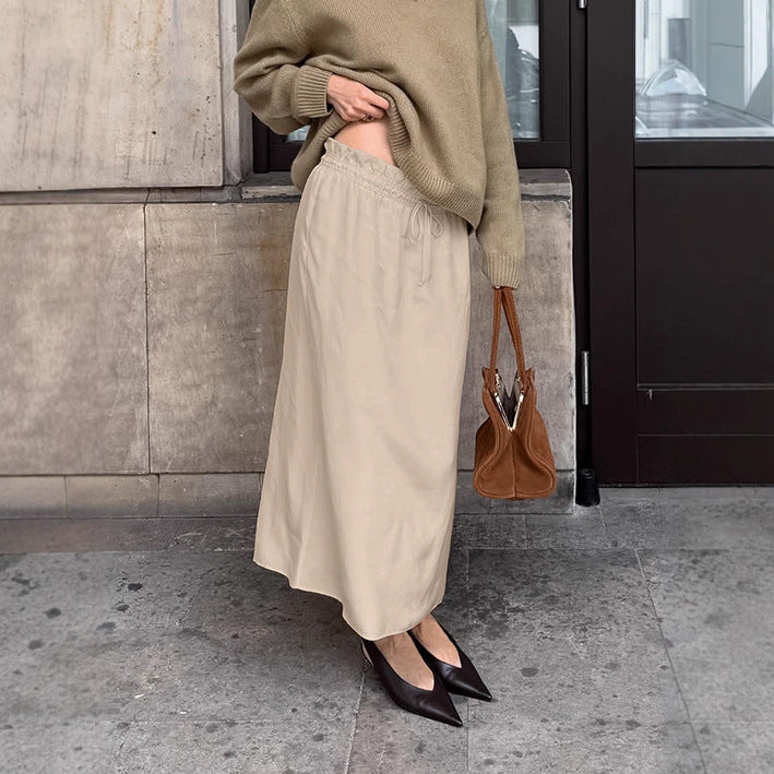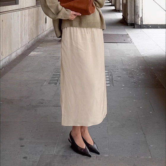 European and American simple drape solid color skirt women's new high waist thin lazy casual versatile A-shaped skirt