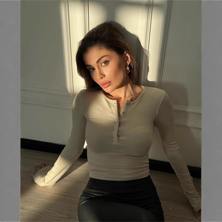 European and American Spice Girls Long Sleeve T-Shirt Women's Casual Design Sense Button Inn...