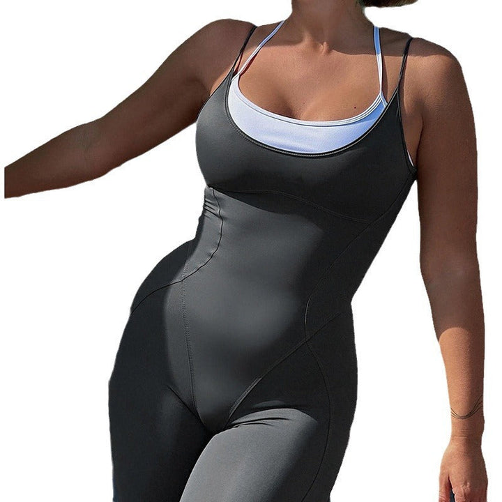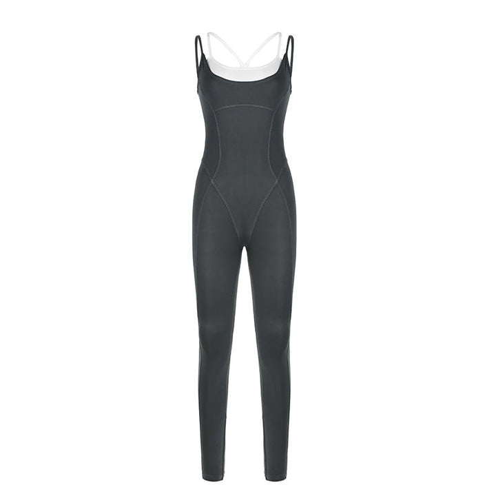 European and American sports fashion new women's clothing fake two-piece split fitness yoga suspender tight jumpsuit casual trousers