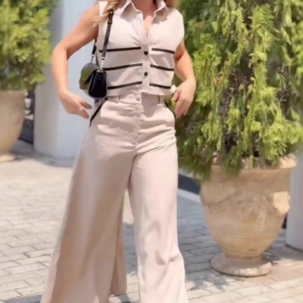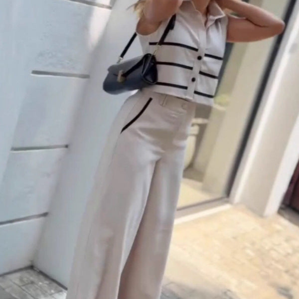 European and American spot women's clothing 2025 new fashion contrasting color short sleevele...