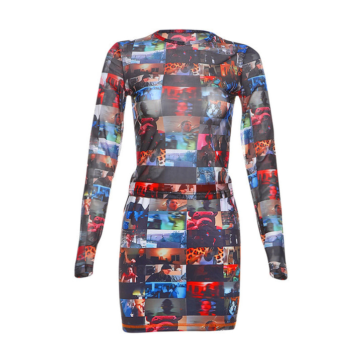 European and American style 2024 new autumn women's clothing fashion personality sweet digital printing high waist slim hip skirt set