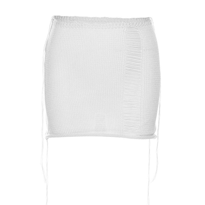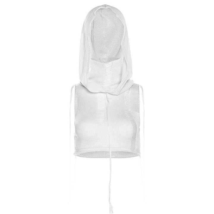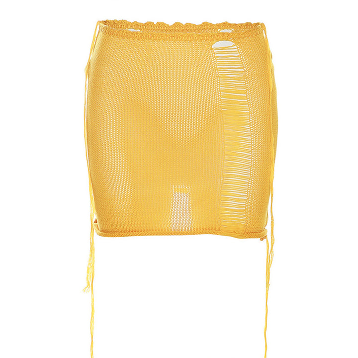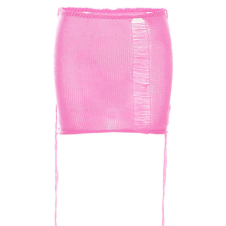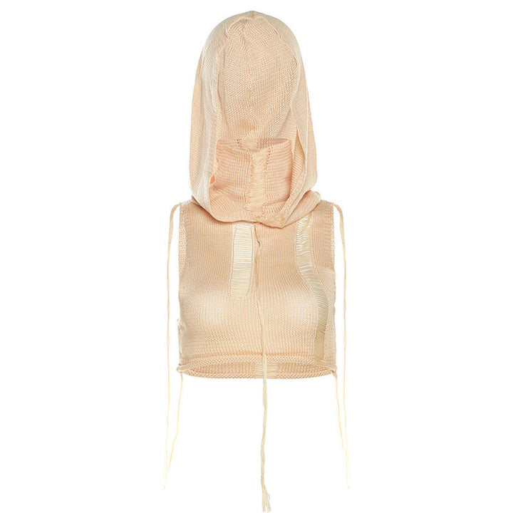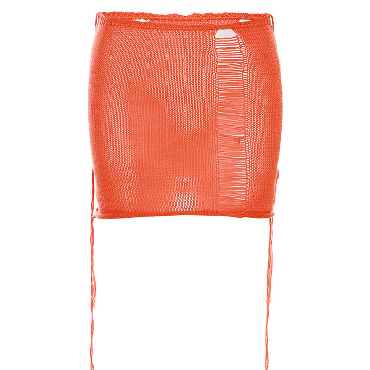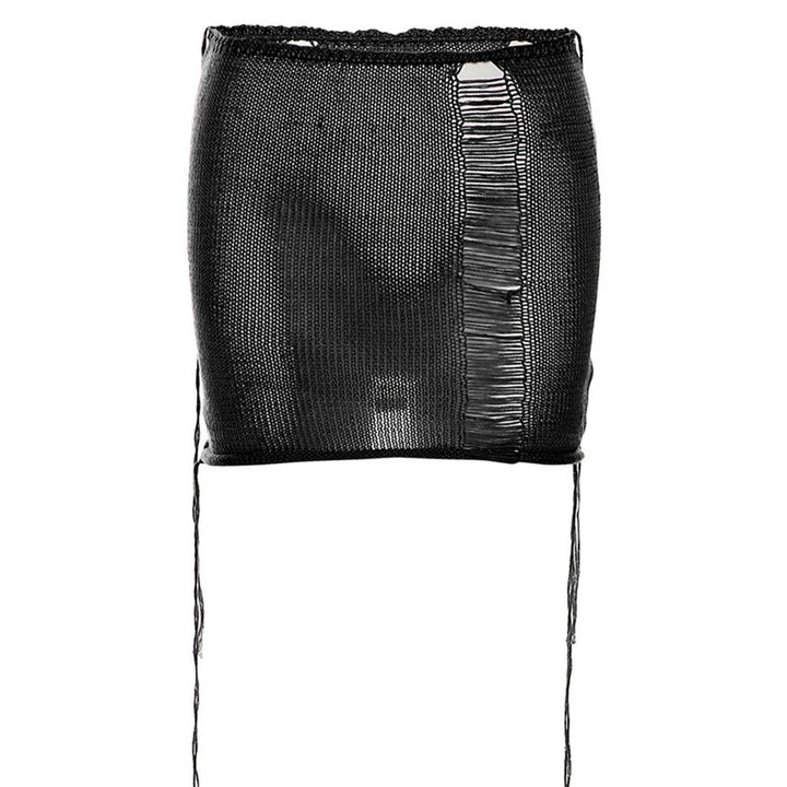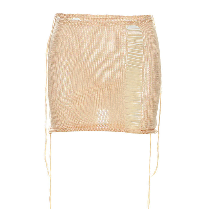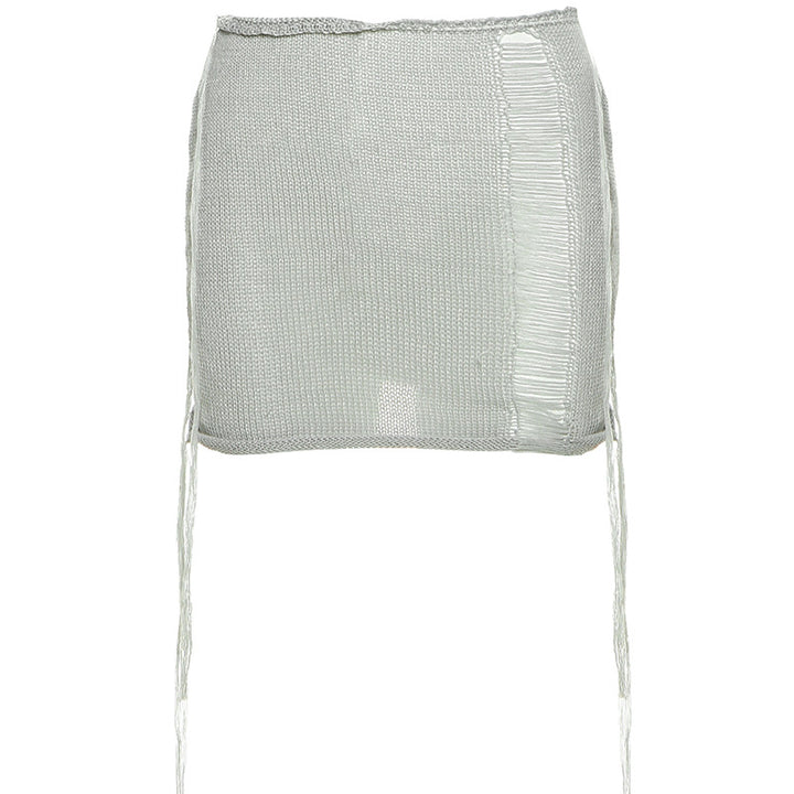 European and American style 2024 new spring sexy perspective hollow sleeveless hooded top high waist hip wrap fringed skirt set