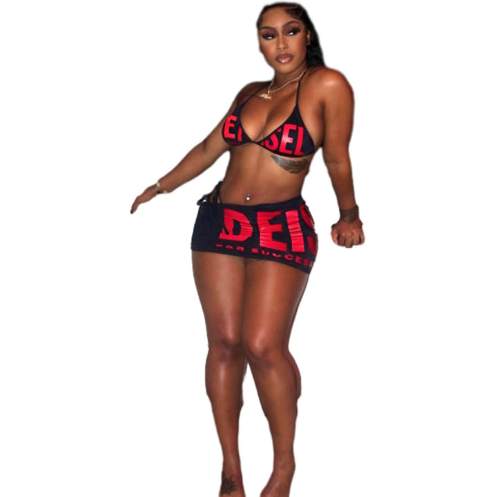 European and American style 2024 new summer trend sexy Spice Girls 3D digital printing sleeveless lace-up hip skirt set