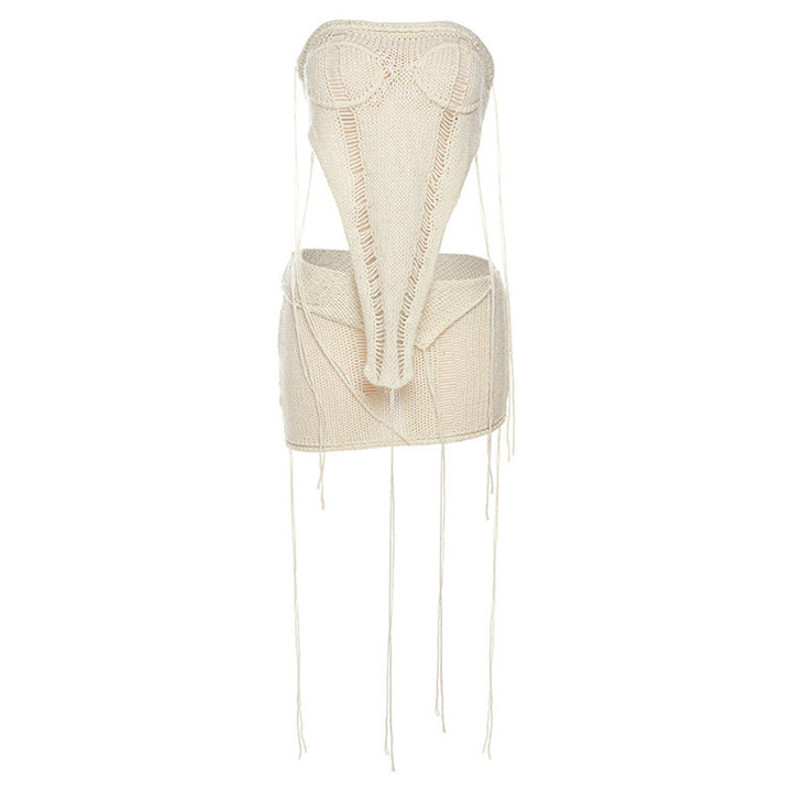 European and American style 2024 new summer women's clothing sexy Spice Girl chest-wrapped halter high waist slim-fitting hip-wrapped fringed skirt...