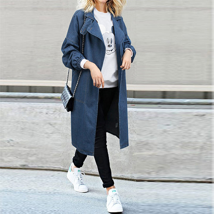 European and American style 2025 autumn clothing new large size women's clothing fat MM loose and versatile long denim jacket