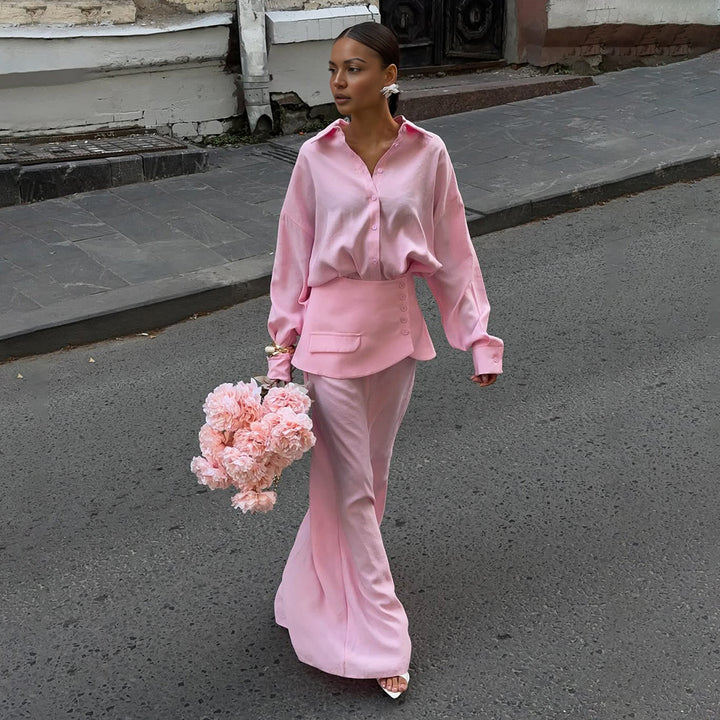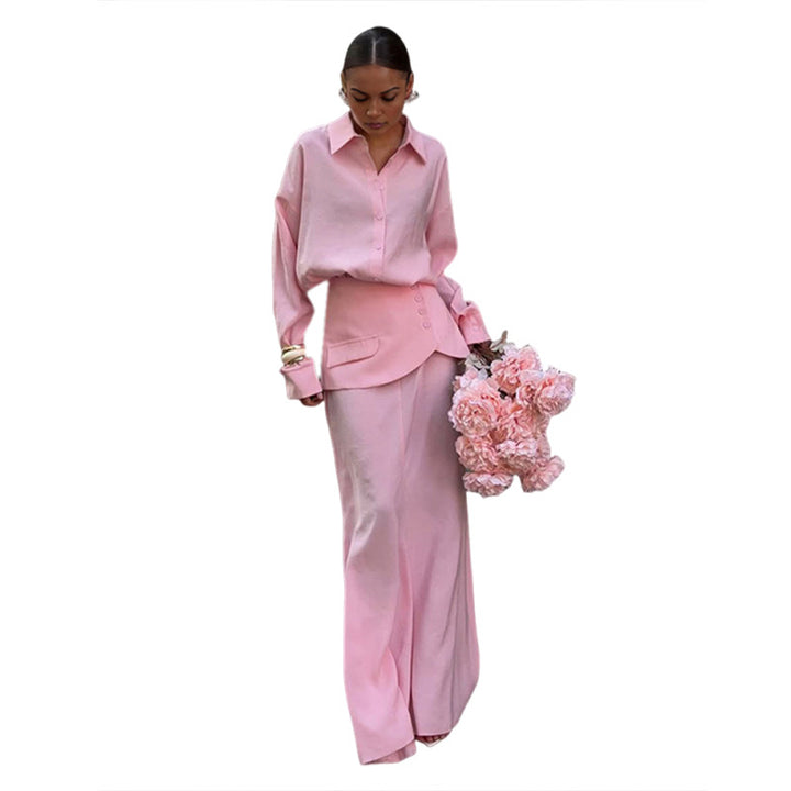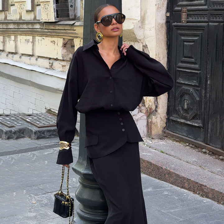 European and American style 2025 autumn new creative street hipster temperament elegant solid color long-sleeved shirt skirt set