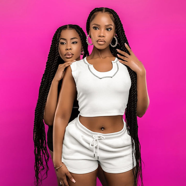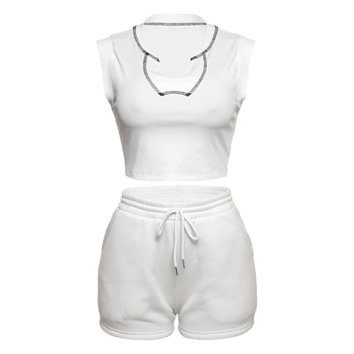 European and American style 2025 summer new personalized street hipster street shot solid color U-neck sleeveless navel pants set