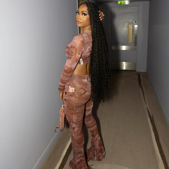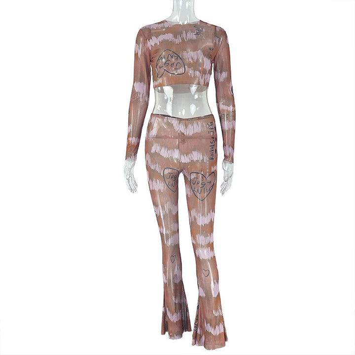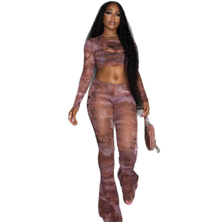 European and American style casual commuter women's clothing comfortable slim-fitting see-through pants set navel top trousers trendy short two-pie...