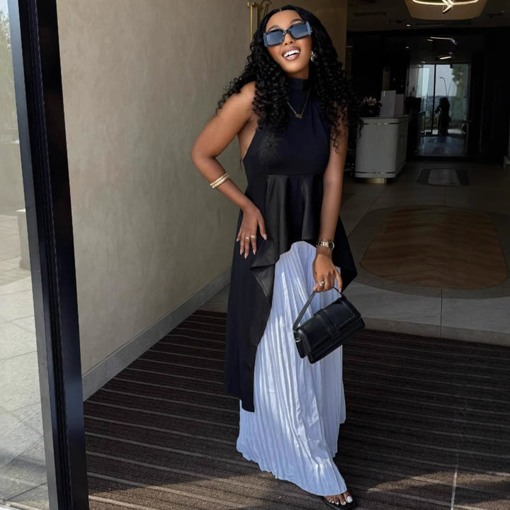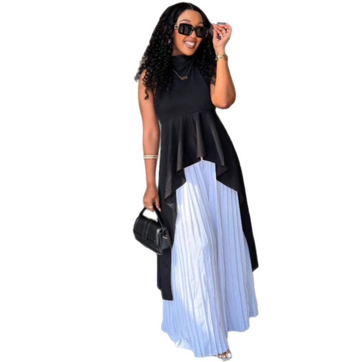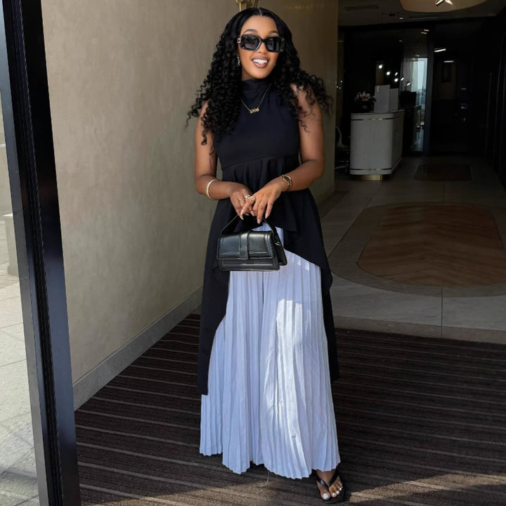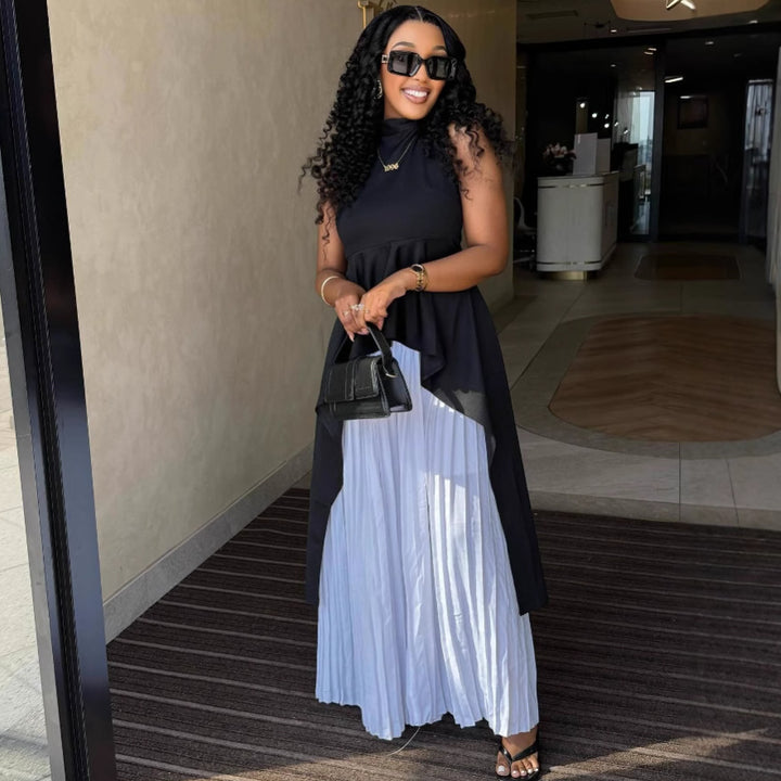 European and American style fashion casual suit sleeveless vest top pleated skirt African irregular two-piece women's clothing