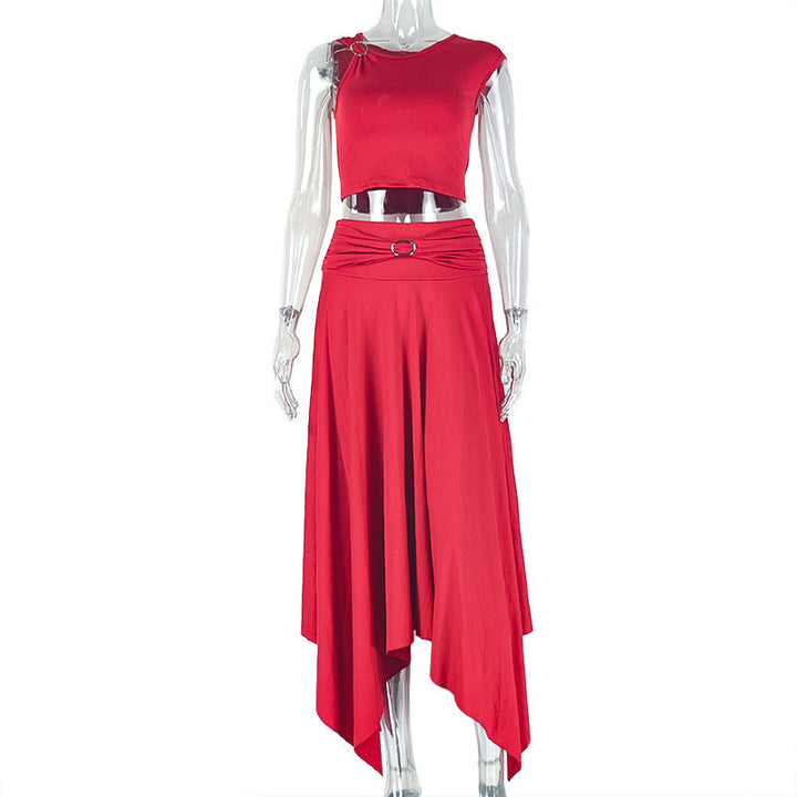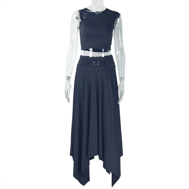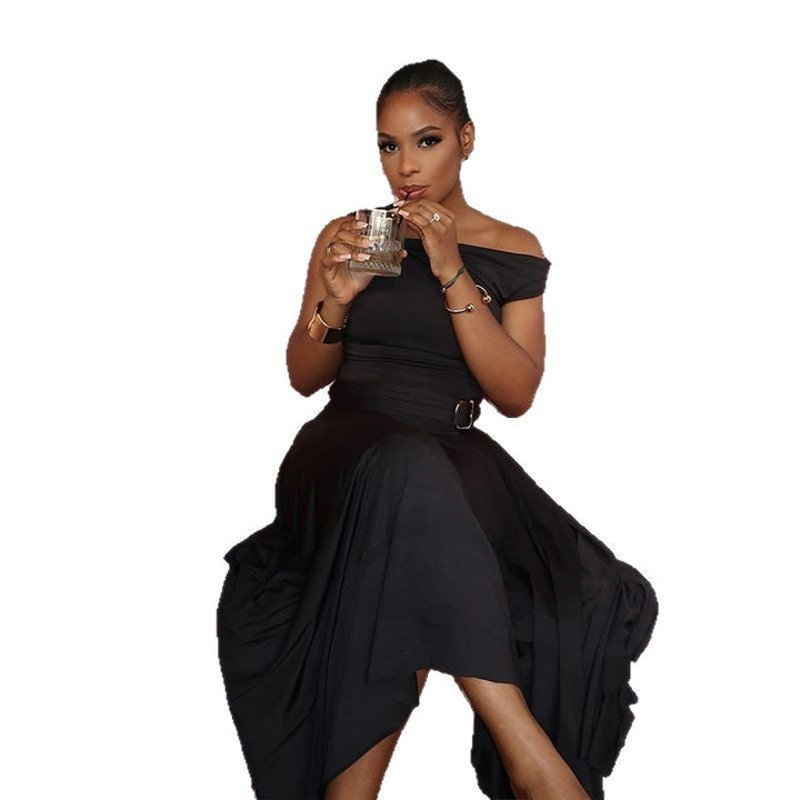 European and American style fashion single suspender skirt leader light off-the-shoulder one-word collar long skirt set temperament casual women's...