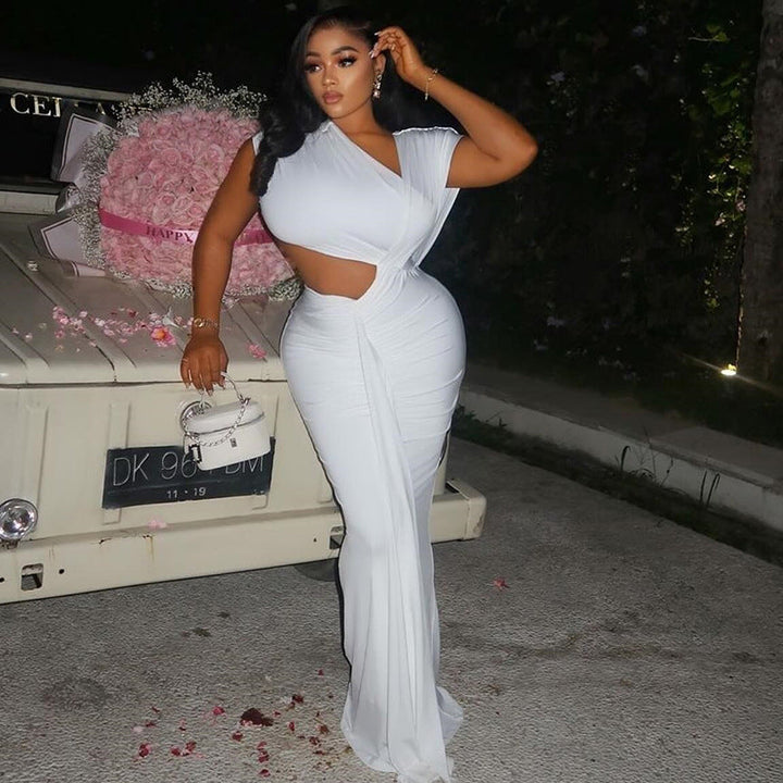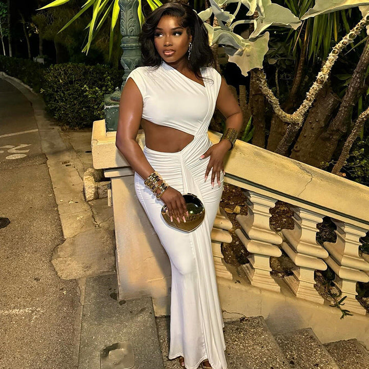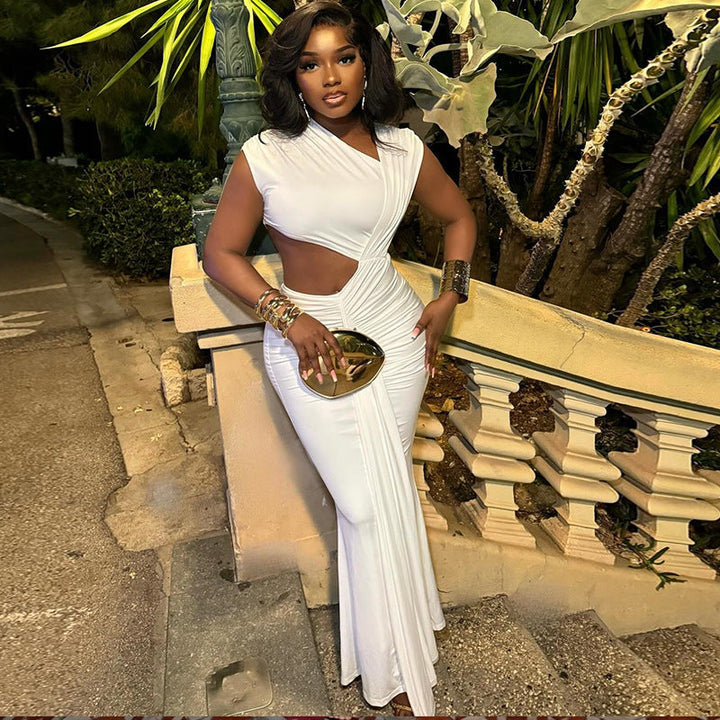 European and American style ins women's fashion solid color dress diagonal neck sleeveless streamer fishtail temperament skirt Dress
