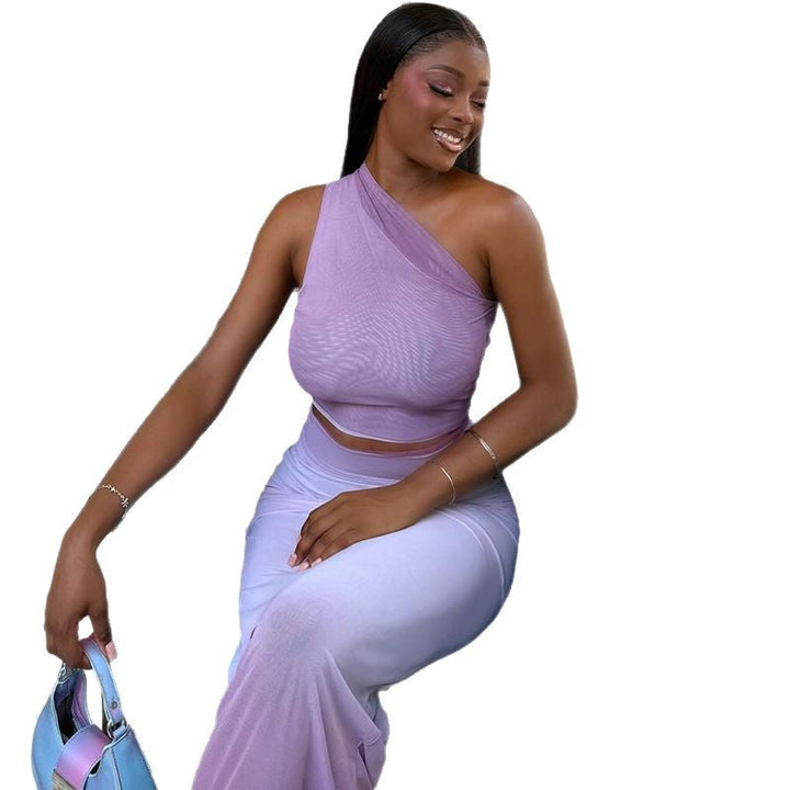 European and American style ins women's skirt set, sexy big shoulder sleeveless top skirt set, two suits.