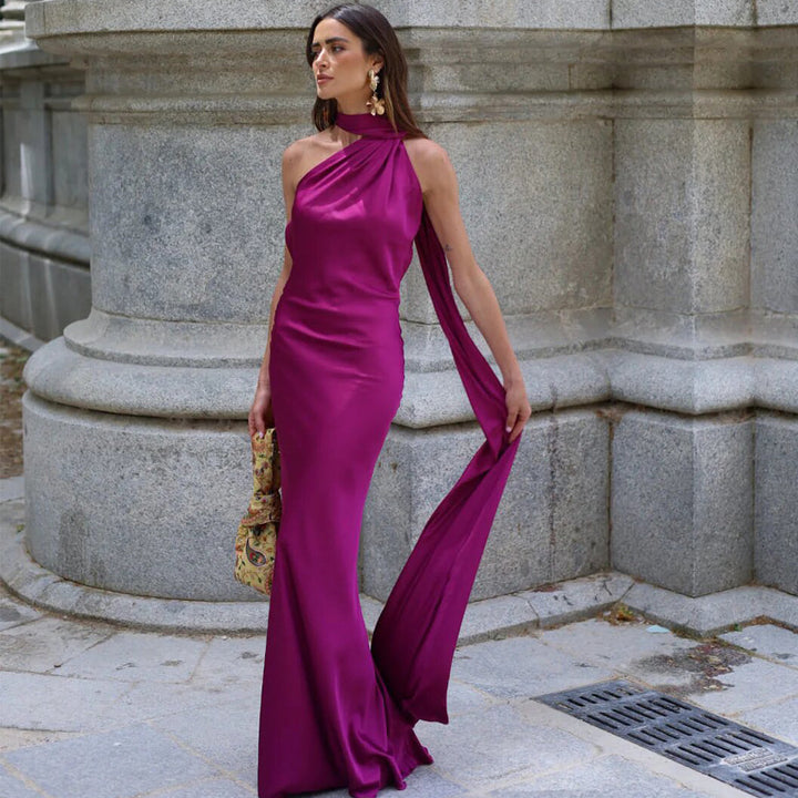 Rose red, White, Light blue, Yellow, black, burgundy, brown, khaki, purple, red, turquoise, Soft satin fabric, large streamer backless design |