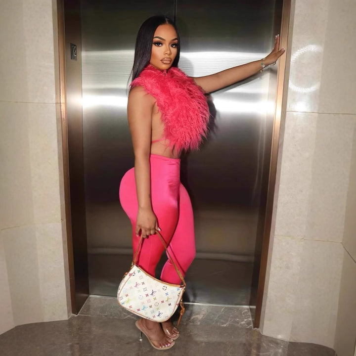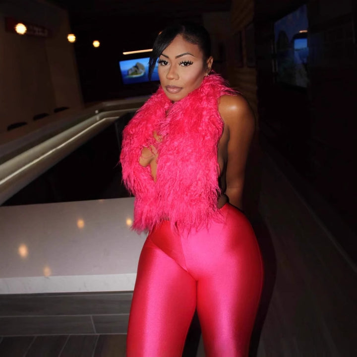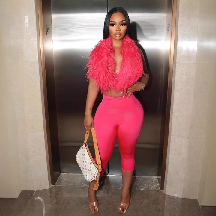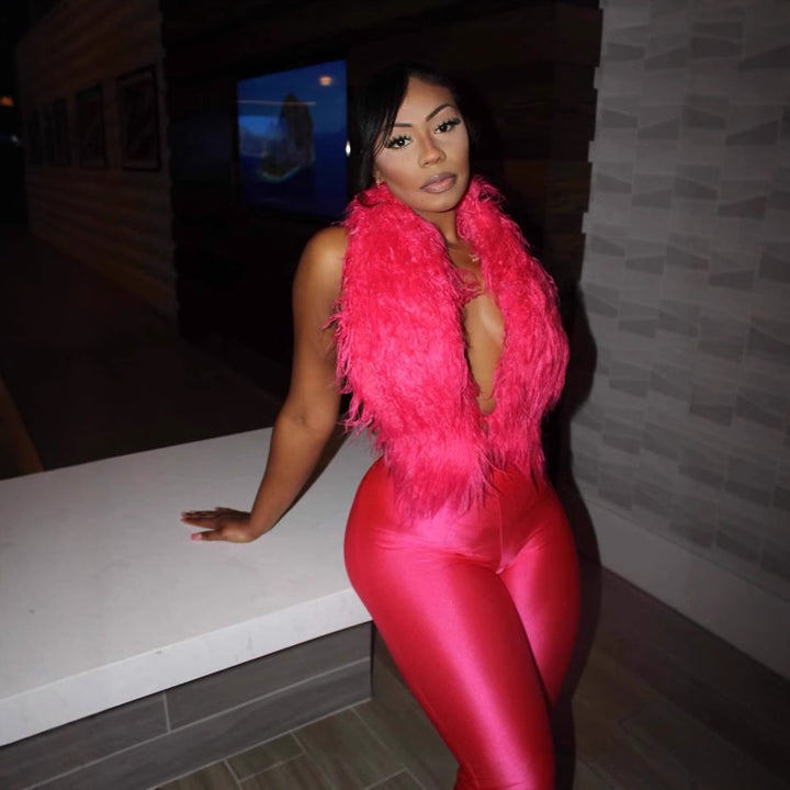 European and American style new women's clothing fashionable and sexy V-shaped fur collar sl...