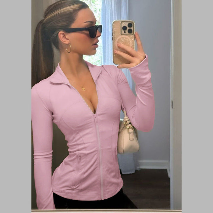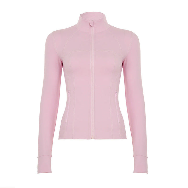 European and American style Spice Girl yoga clothes top zipper cardigan solid color nude stand-up neck sports fitness clothes summer sunscreen shirt