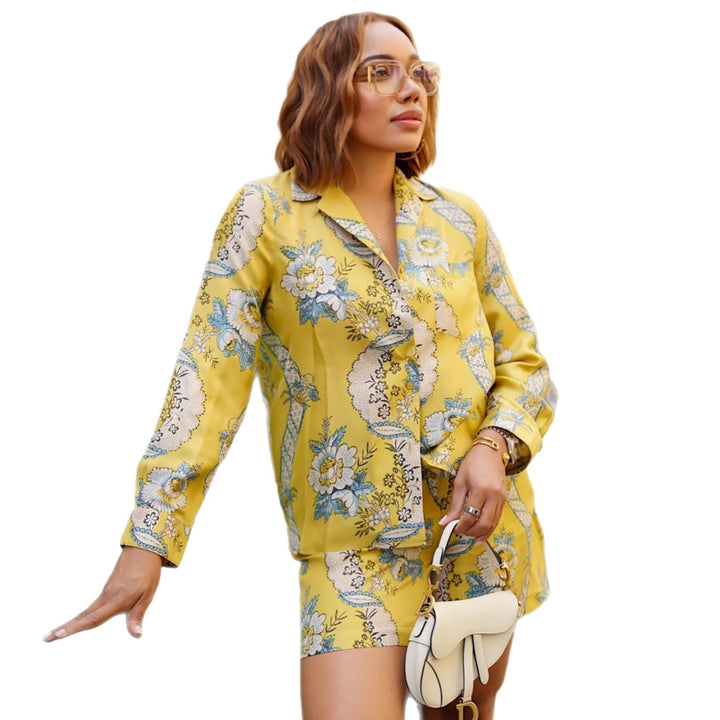 European and American style suit collar long-sleeved cardigan printed shirt casual shorts African new women's clothing foreign style two-piece set ...