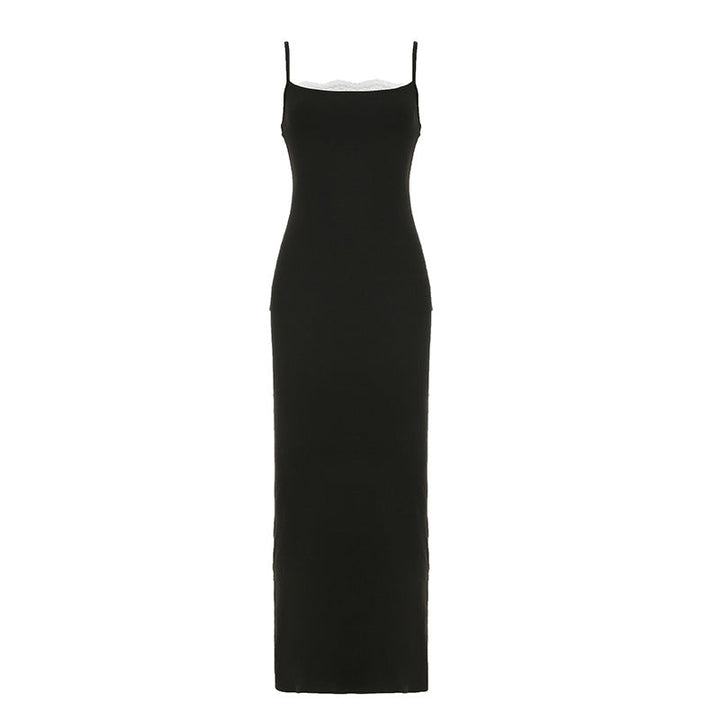 European and American style summer women's long dress square collar sexy low-cut lace splicing suspender dress pencil skirt women's wholesale