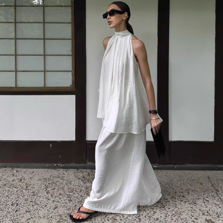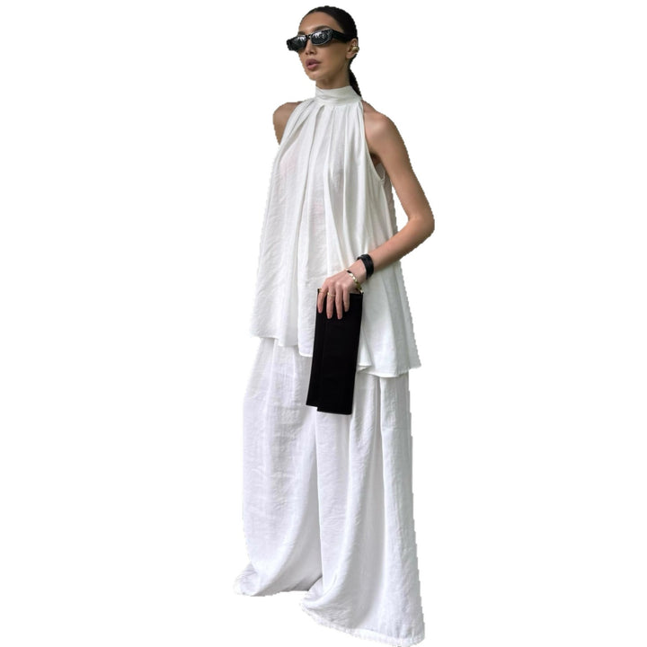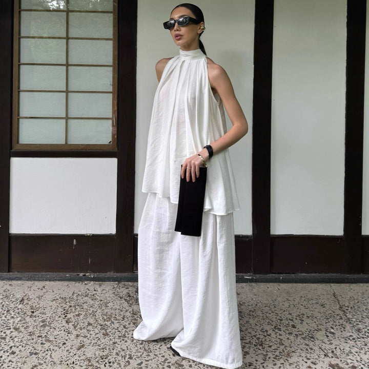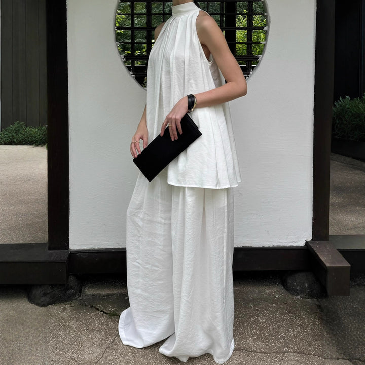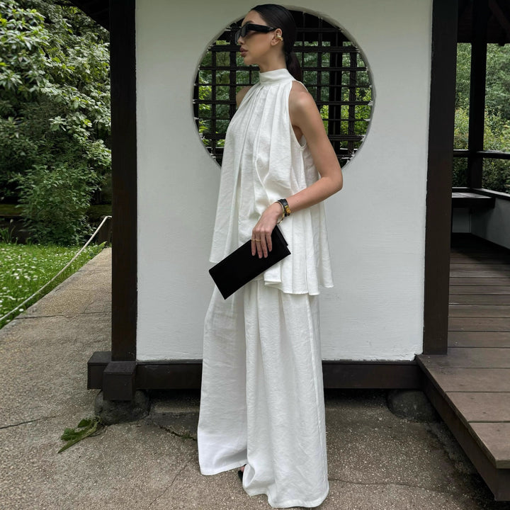 European and American style temperament Muse fan solid color top wide leg pants set women's women's elegant two-piece set summer
