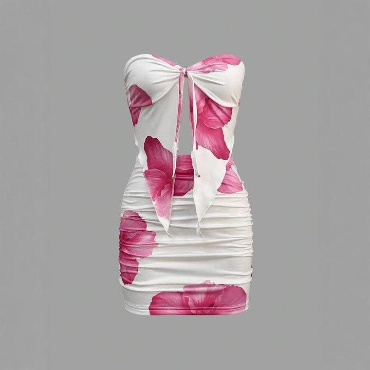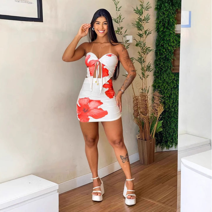 European and American summer new women's clothing sexy Spice Girls printed lace-up off-the-shoulder tube top and hip slim skirt set